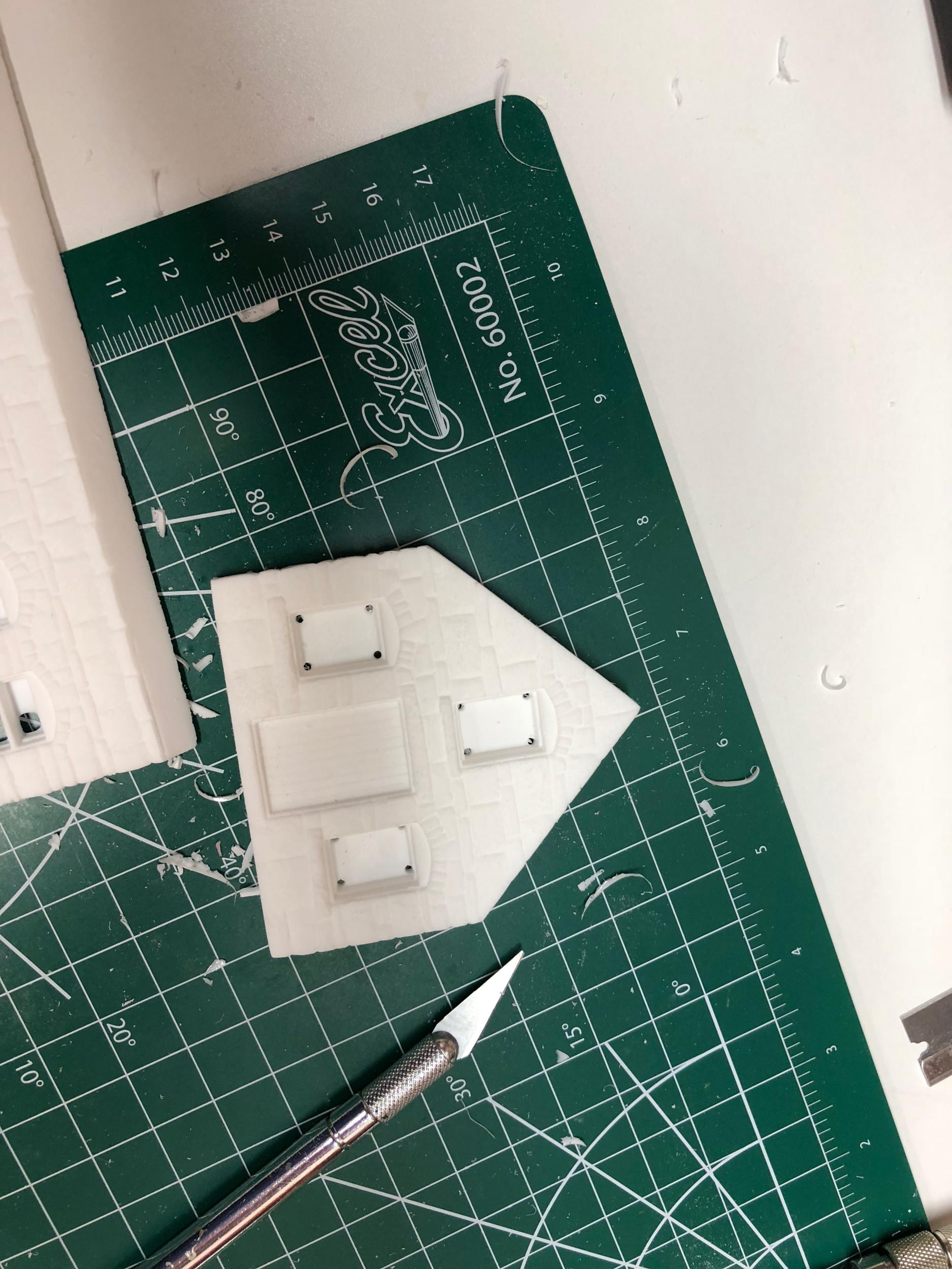 Casting preparation is underway.  I'm using a number 11 blade to clear out the windows, and a sanding block to clean up the edges and make sure the castings are square. This will take a few days. I'm about a third of the way done with the first batch of castings (main structure castings). I will be making the molds for the second batch of castings this week. The resupply  of casting materials arrived in yesterdays mail.