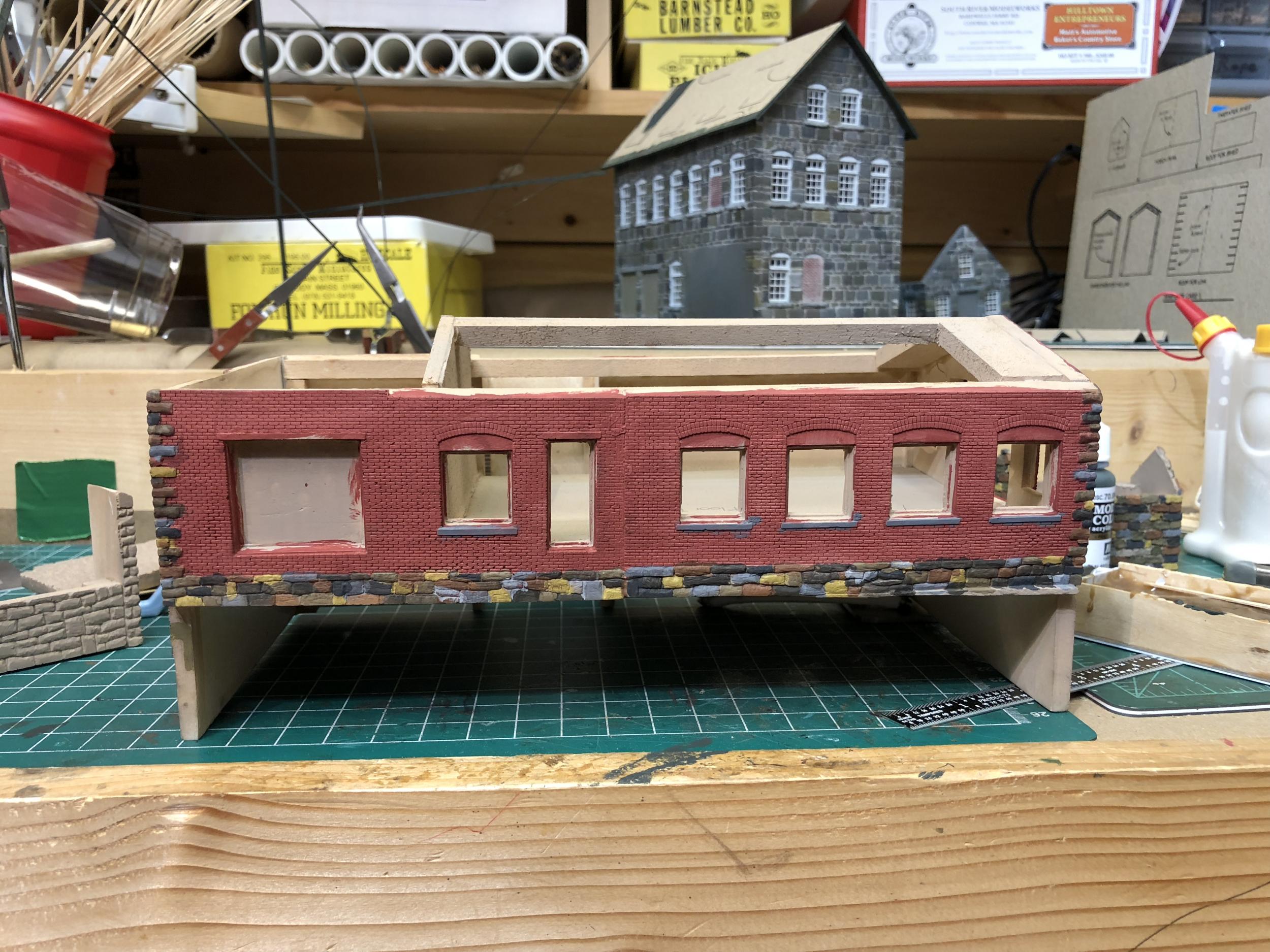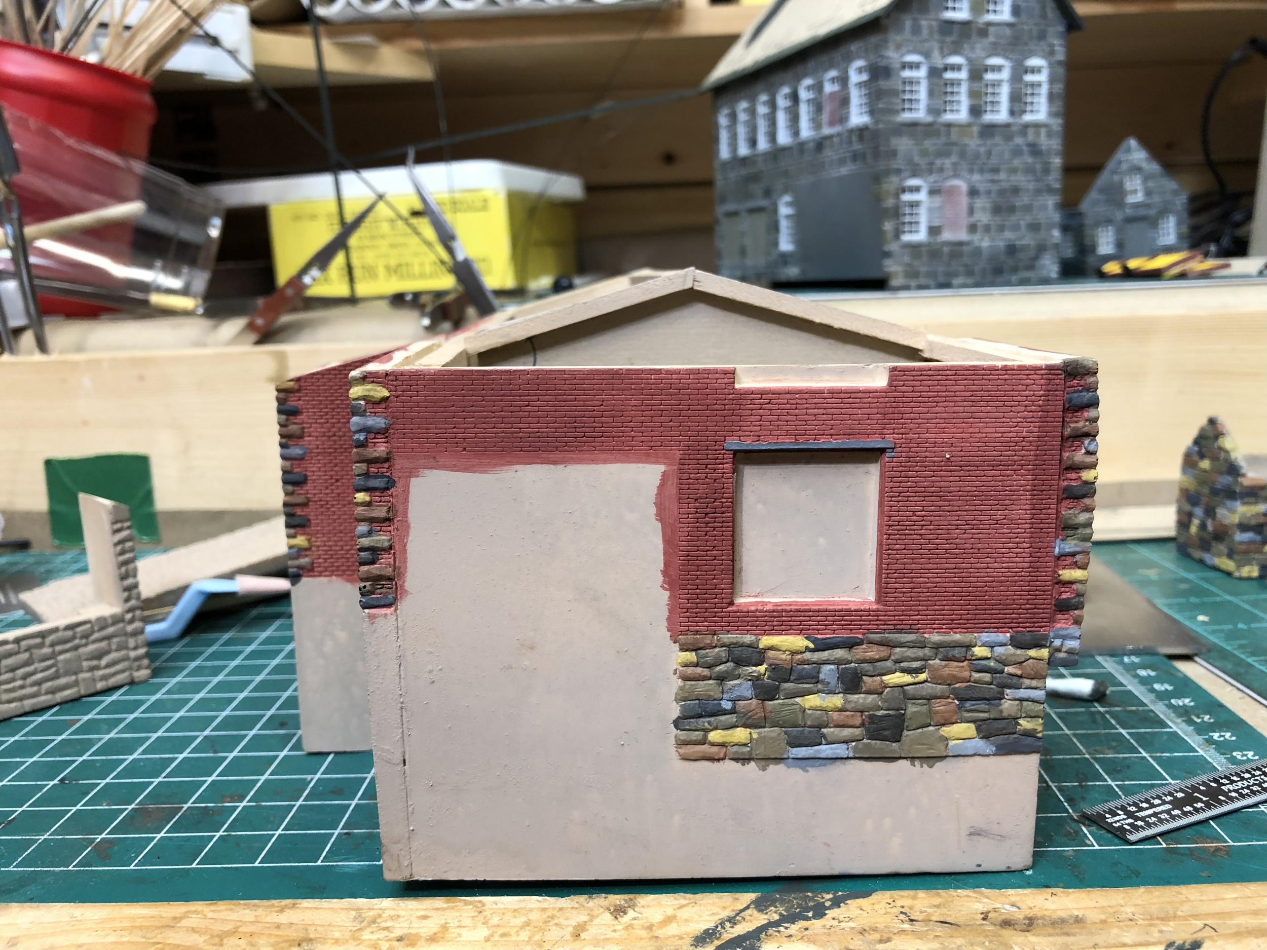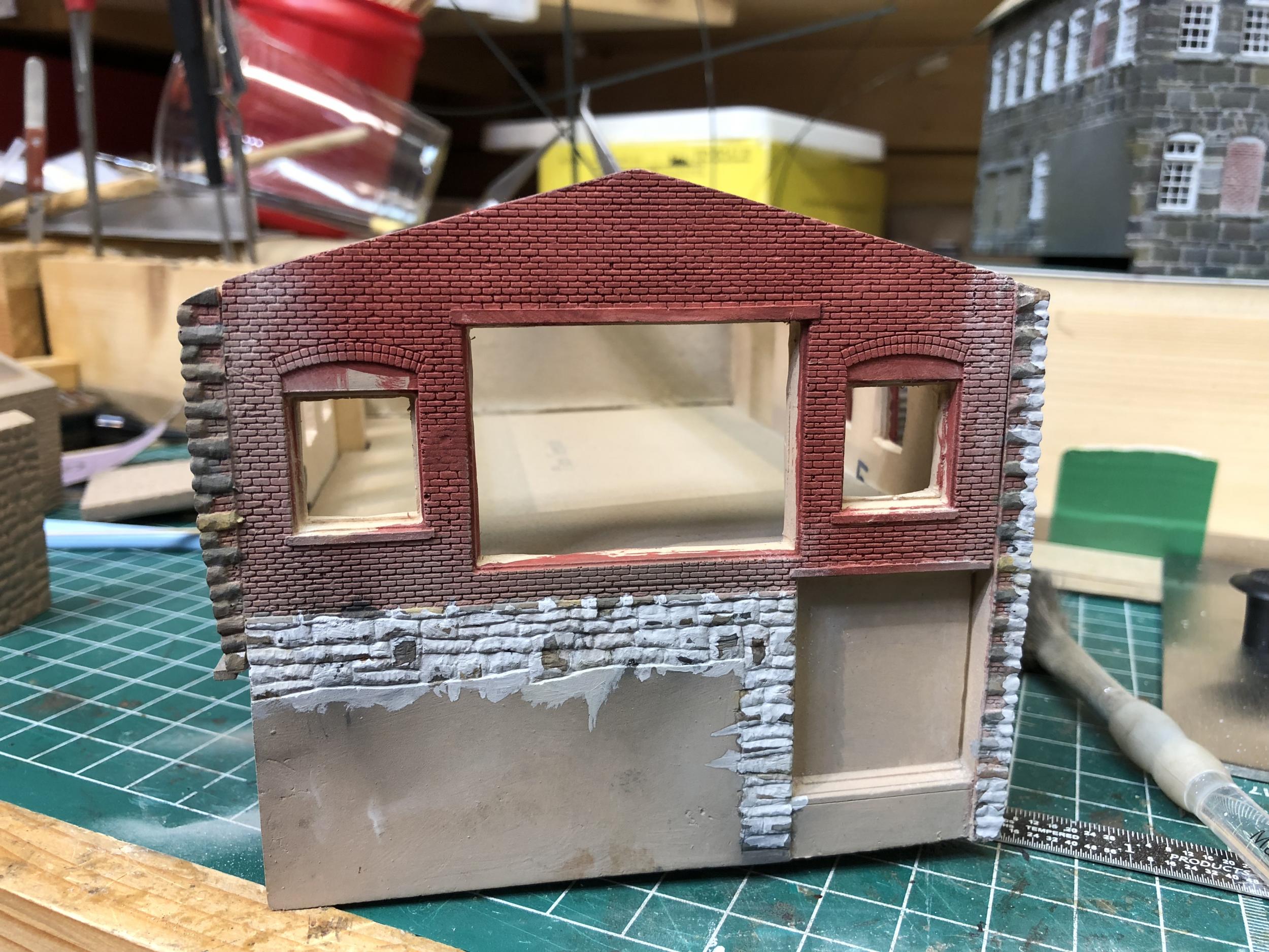 I then added the mortar for the bricks using a stiff brush to get it down into the mortar lines.
