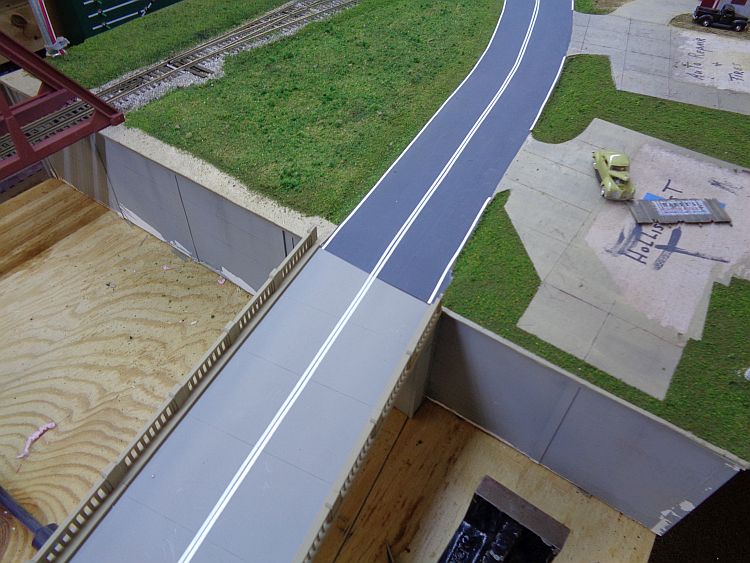 At this point I needed to do more roadwork. It would be had to stripe the road with more scenery and trees in place.