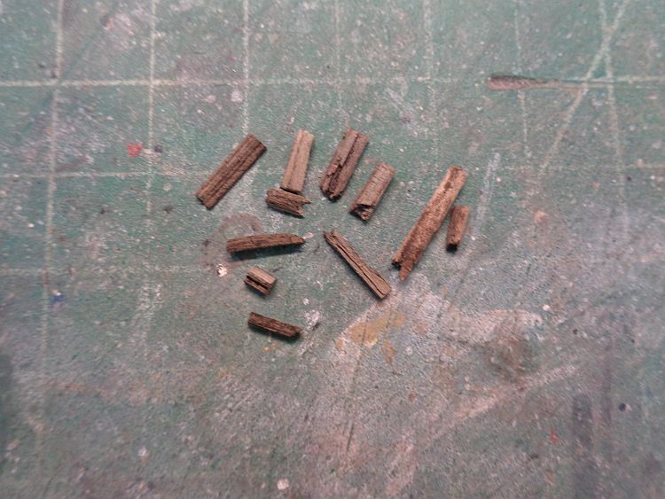 I used a single edged razor blade and cut the mulch horizontally into several different pieces. I then cut them to around four HO scale feet in length.