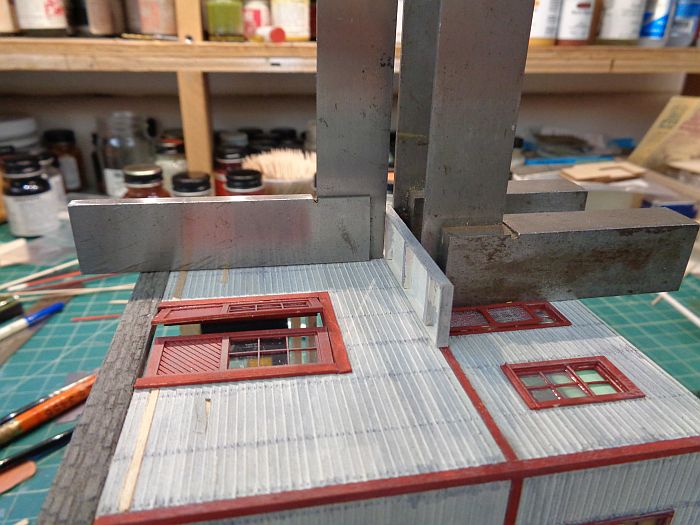 Another pet peeve of mine are structures that lack a foundation.  Kudos to Ken for including such a nice one with this kit.  Your use of stain rather than paint on the foundation is something I will have to try.