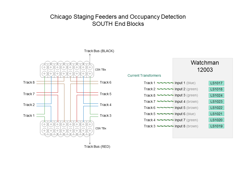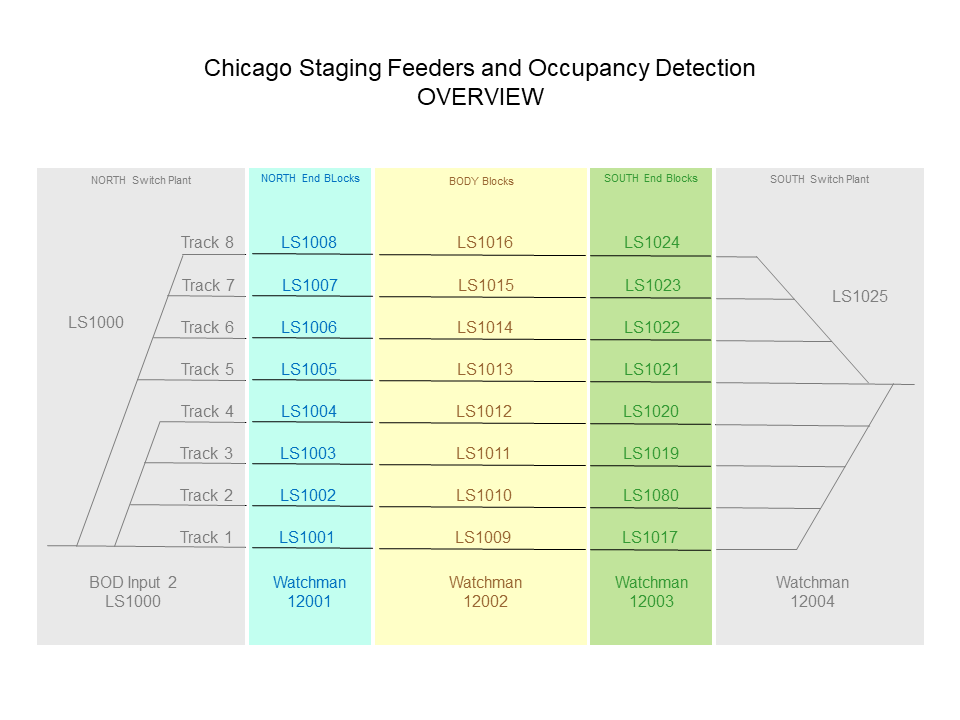 I am really enjoying your posts. I agree 600% about the documentation. Trying to go back "later" and change/expand/fix an electrical system without documentation is NO fun to do by tracing wires....especially when much of it is not easily accessible (under the layout, for example). Here's an example of a few pages from the ring binder I have been putting in place for my circuitry. Nowhere near the structure of what you have, but hopefully will keep me out of trouble. I have north end staging that represents Chicago on my layout. Occupancy blocks are set up as follows: