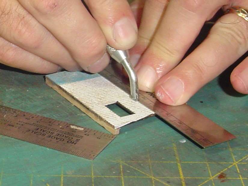 Before applying the A&I wash to the walls I needed to beat them up a bit.  First I added rows of nail holes using a ponce wheel and steel square.  We won't go into the whole nail hole discussion here.   ::)