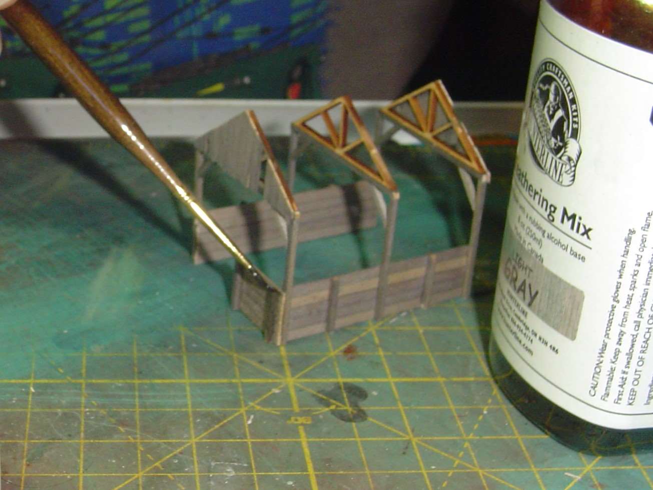 The two end pieces have some boards applied at the top.  I wanted some broken and even a few missing to give the impression this business has been around a while.
