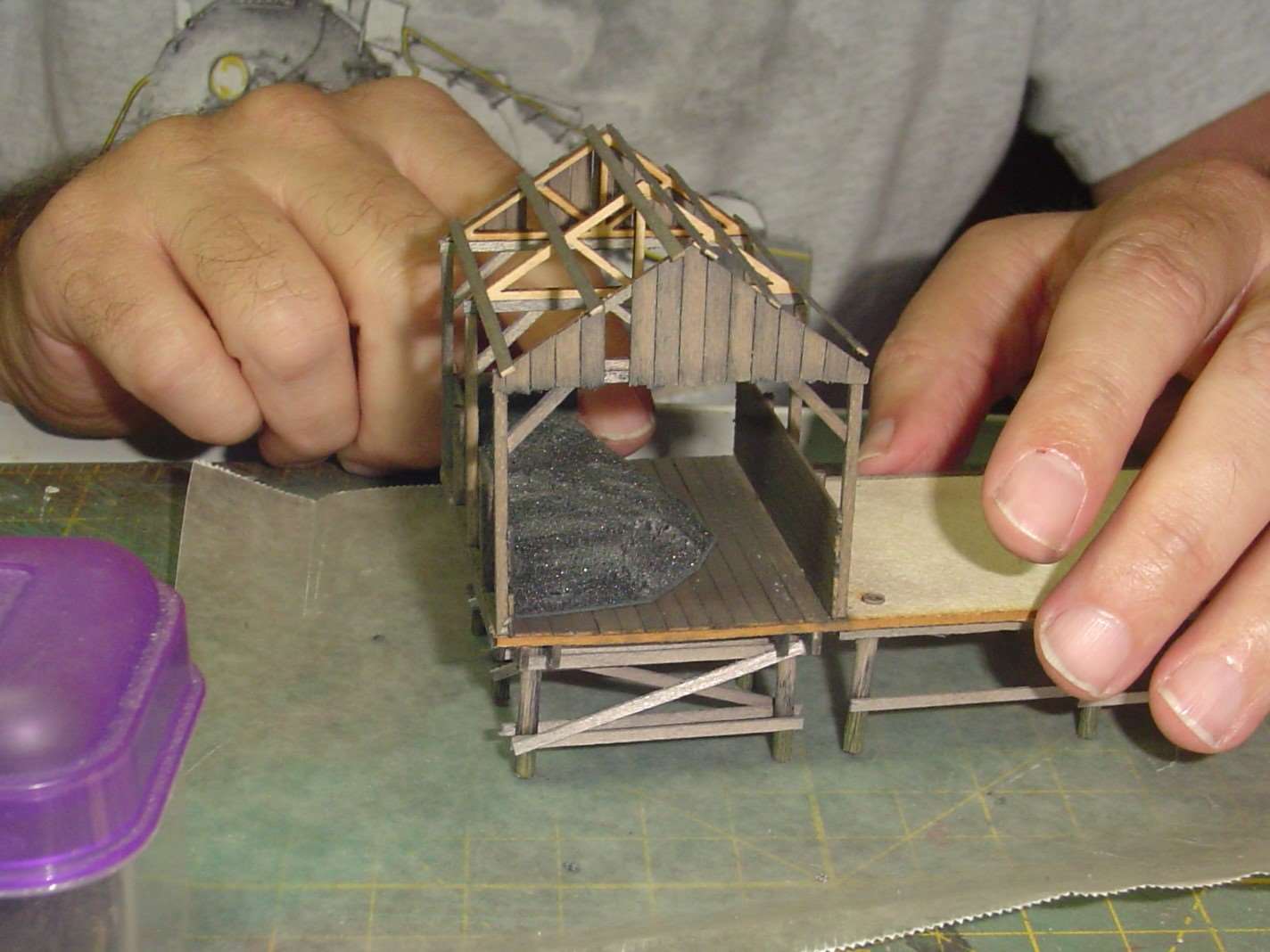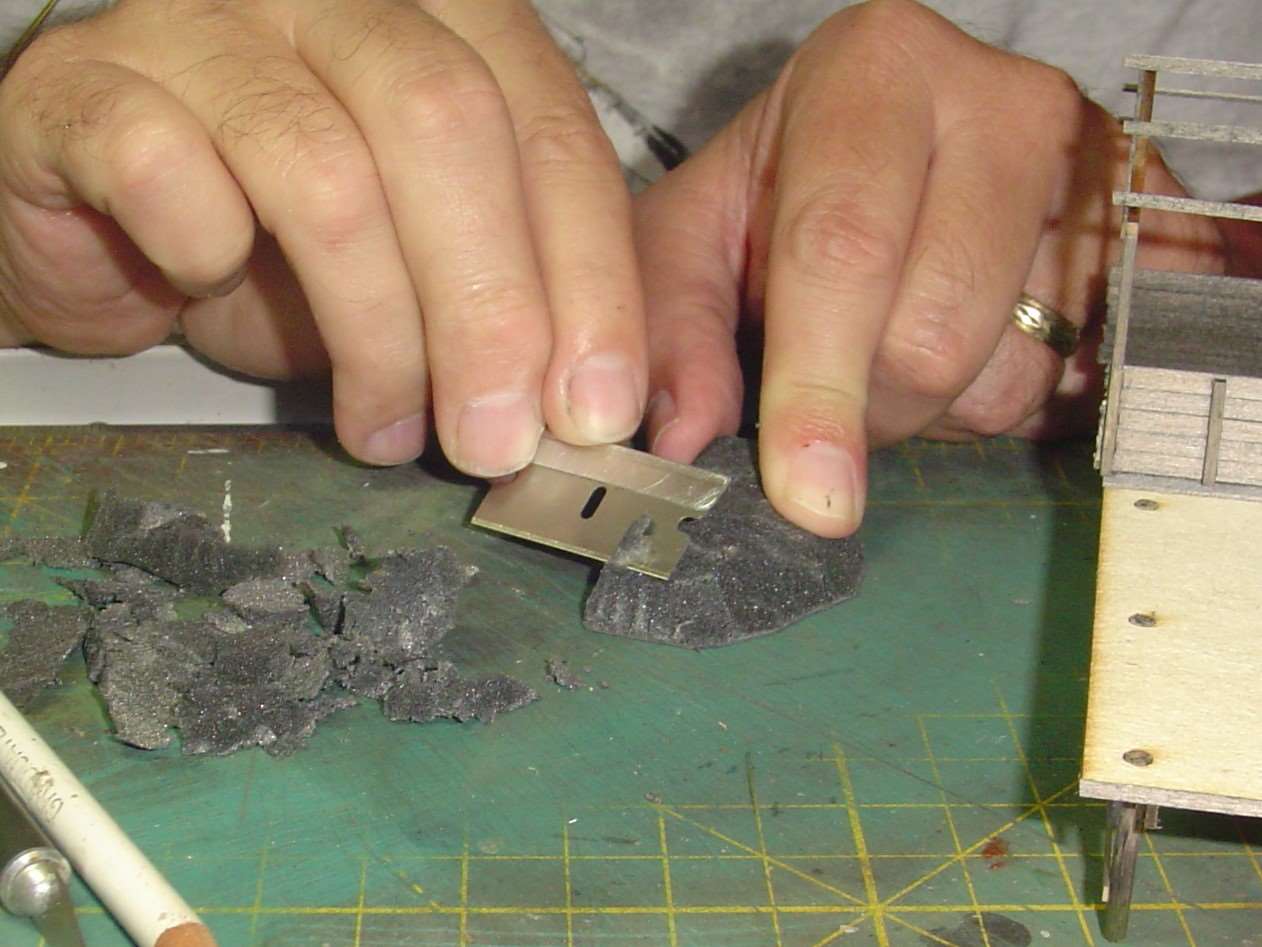 I took a small piece of black Gator Board, removed the top and started shaving off pieces to form a coal pile.