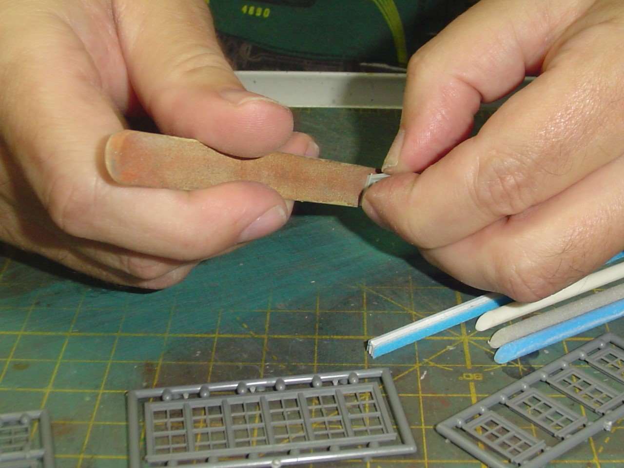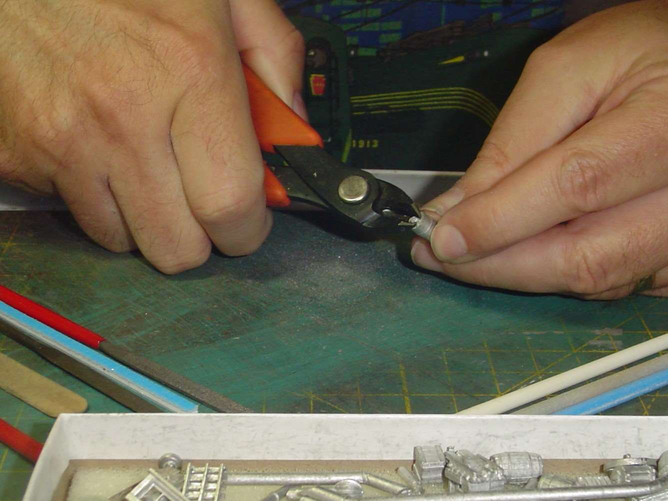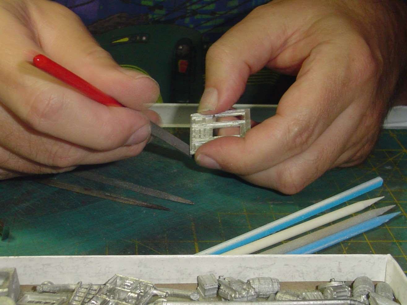 The metal castings require very little clean up.  I use files, emery boards, sanding sticks, etc. to clean up anything that needs to be cleaned up but there really isn't much to do here.