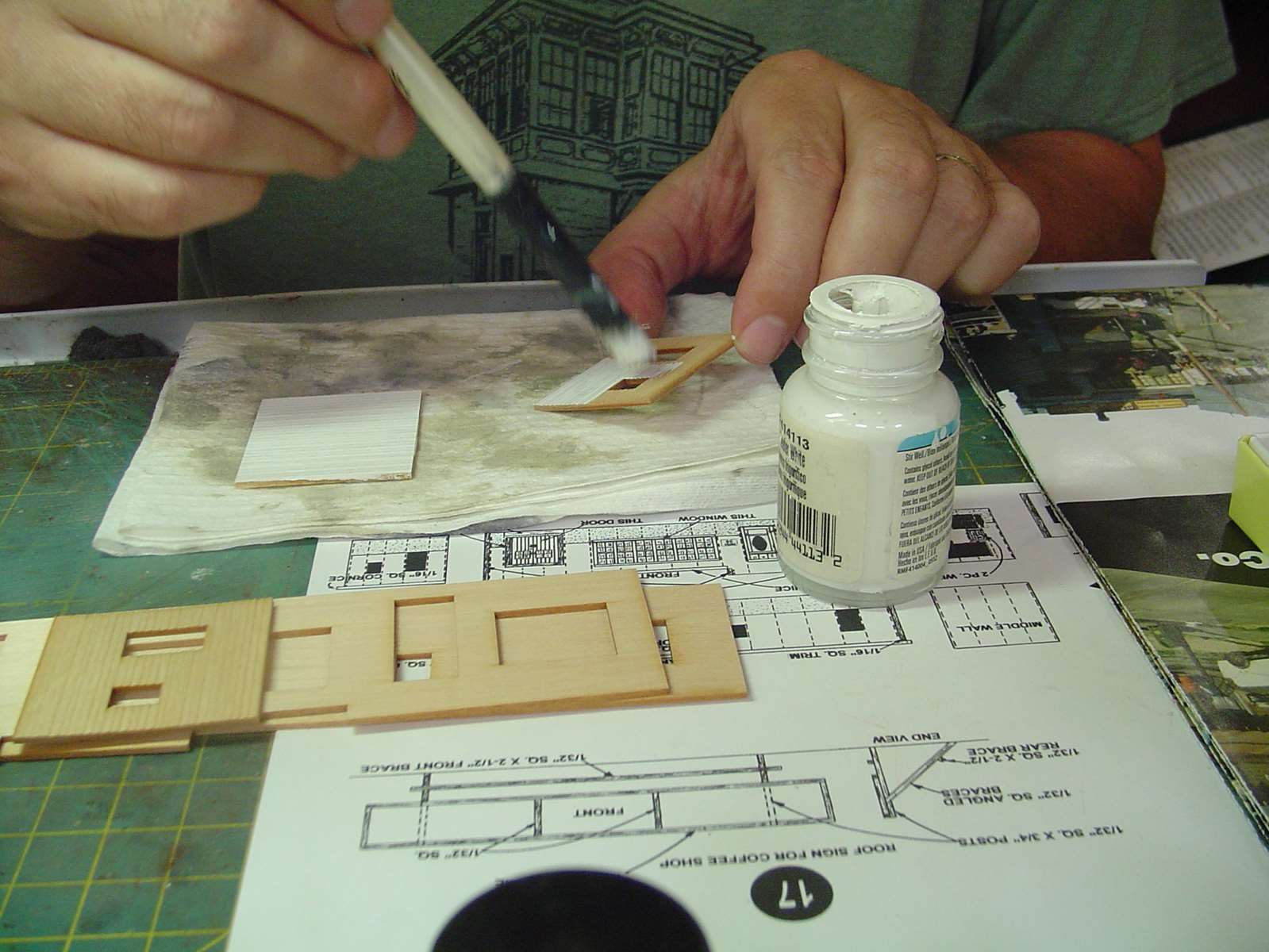 Time to get started on the coffee shop.  I followed the instructions on this and didn't stain the wall before painting them like I usually do.  Partly because I was following the instructions and partly because I forgot to stain them.   ::)  I painted them white first (Polly Scale Reefer White).