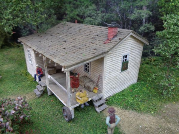 Fatty Patty is of the age when most young girls become a discipline problem.  She is supposed to help her mother with the cooking and cleaning but she has become extremely lazy and has to be "spoken to."  She wines a lot.  (The photo shows Fatty Patty sitting on her lazy patootie at the edge of the front porch, while being scolded by her Grandpa for not bringing the laundry in from the clothesline before the afternoon ACL freight stormed by spewing boiler water and coal soot all over creation.  Farmer Perkins has had enough of the squabble and is sitting on the other side of the porch.