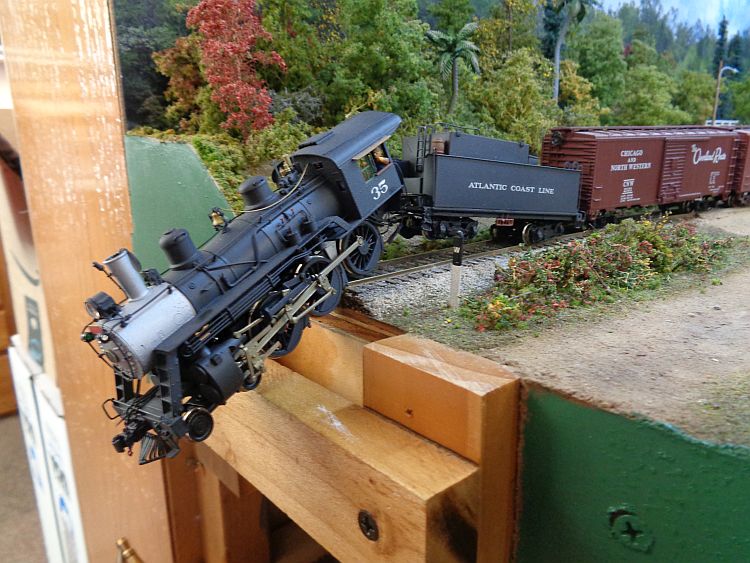 I really can't tell ya'll what can happen to a brass loco that falls from the track some 38.5 inches to the bottom of the Great Divide.