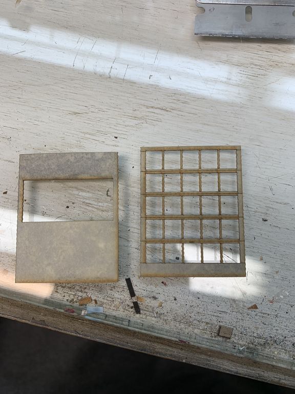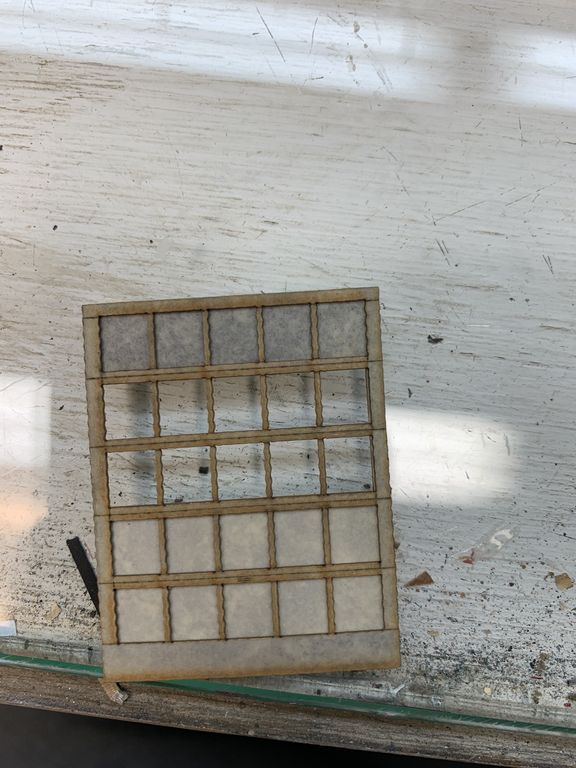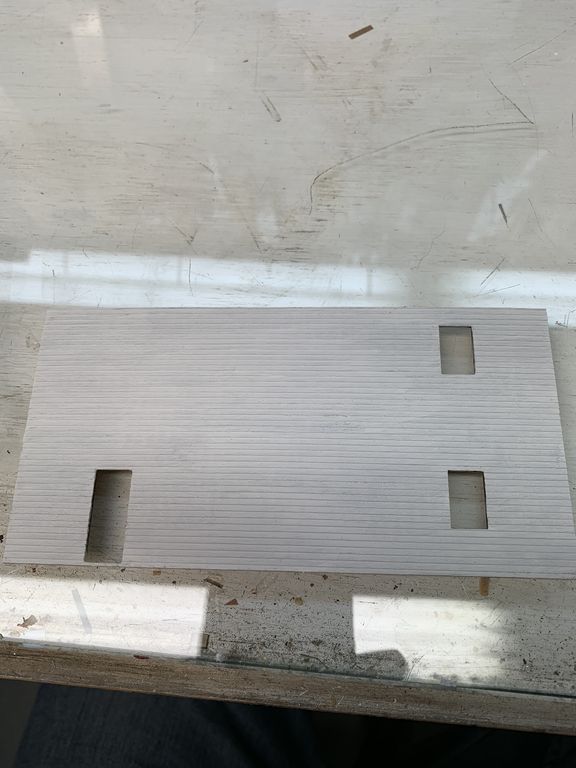 The kit includes a few pieces of wood cut to simulate corrugated metal. I haven't worked with this material in the past but I'm curious to see how it works out. One piece is designed to be cut into a door opening to simulate a roll-up metal door. The rest will form the walls of an addition to the building.