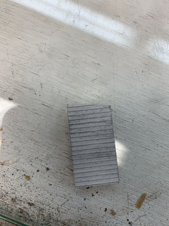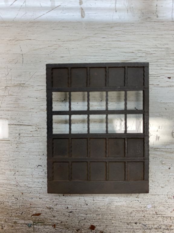 One of the smaller wall sections for the dormer. After wire brushing I used some scotch tape to pull the paint off in areas.
