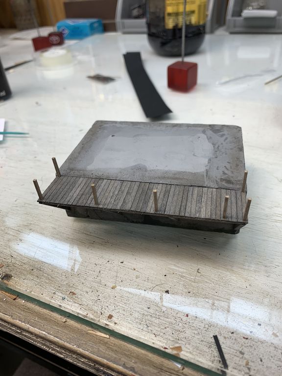 I glued the dock onto the plaster casting. I also added the 2 most outer supports.