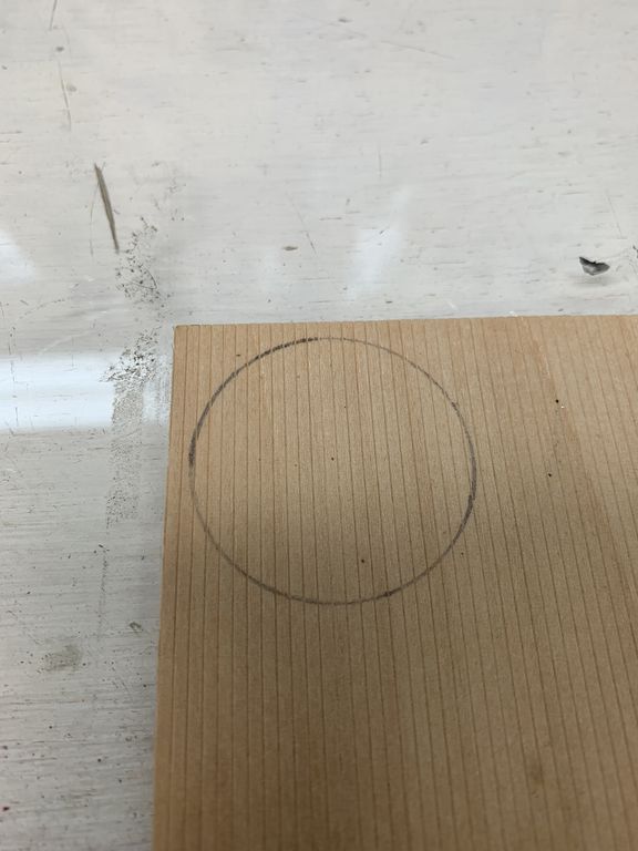 I wanted to build this tank with a flat top instead of shingled roof. I used a compass to draw a circle on some thin scribed siding.