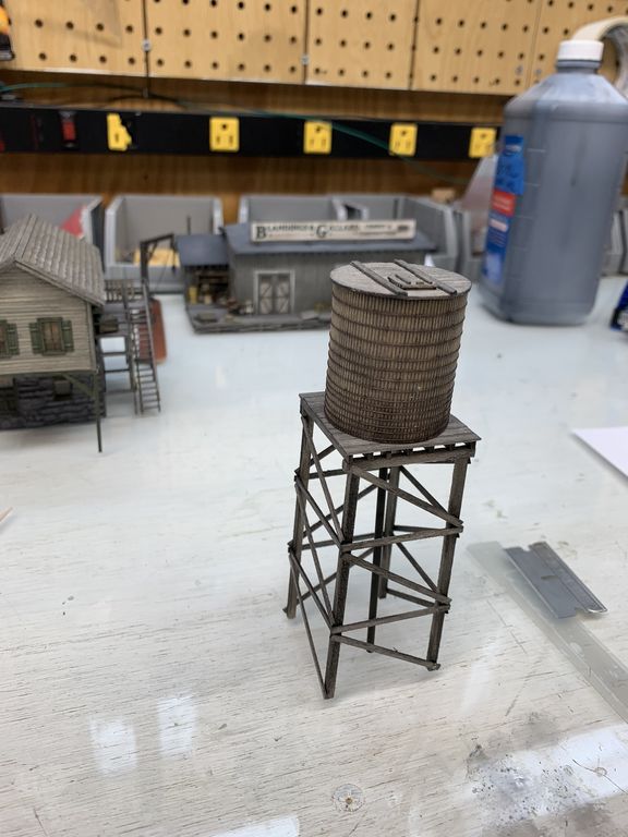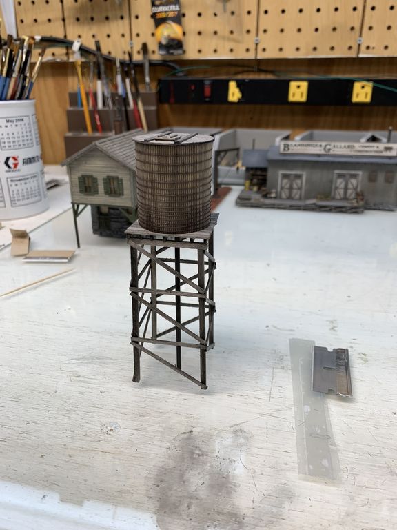 I ran out of NB&W castings so I had to order some. Once they come I'll be able to finish the tank. I'm thinking it will sit right next to the office building but I'm not sure yet.