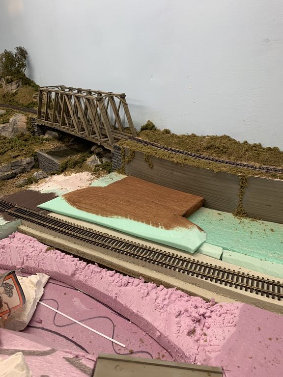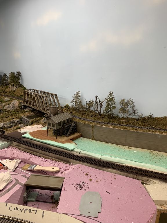 I added the trees and foliage above and behind the concrete wall today. I'm still adding more there.