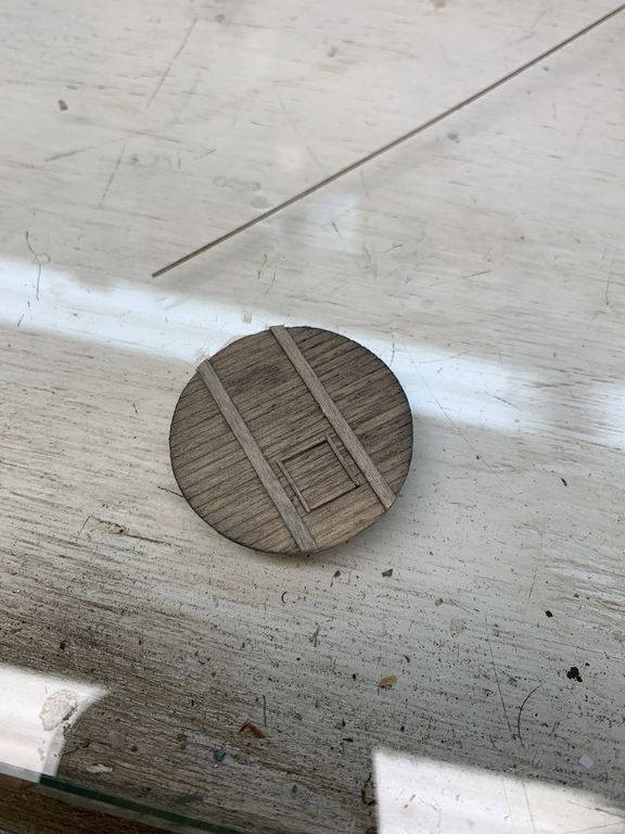 I cut out the circle and stained it with A&I.