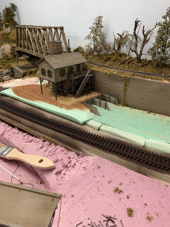 Thanks for following along. I spent some time getting the area ready on the layout to start adding the buildings. Hopefully tomorrow I'll be able to place at least the warehouse in it's final spot and detail around it. I'm probably going to work on some bins with stone and dirt for the scene also.