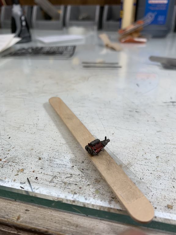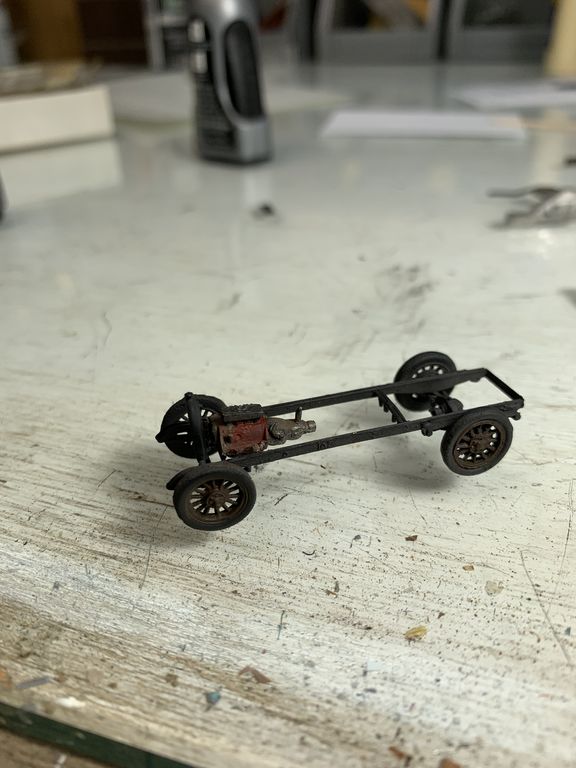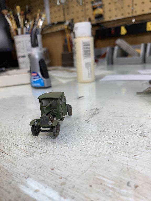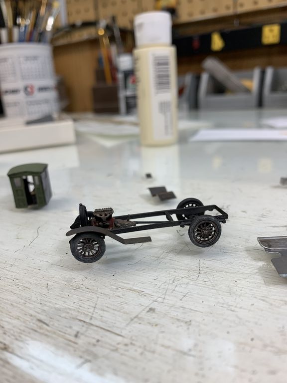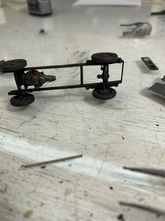I painted the seat and added the steering wheel. The interior will not be visible so I didn't worry about the shift levers or brake linkage.