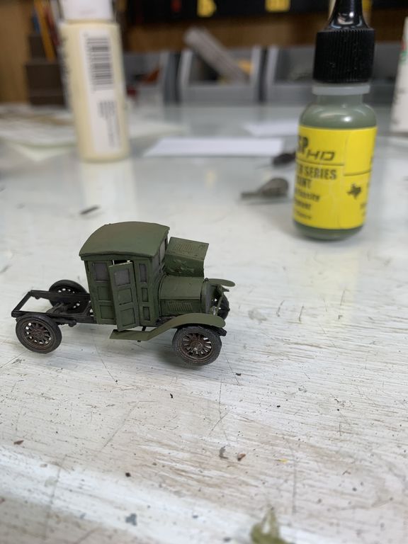 I built one of the Oldsmobile trucks and added some scenery to the diorama. The truck kit is every bit as difficult and frustrating as I was expecting. I took many photos of the subassemblies so this will be a little bit of a large update.