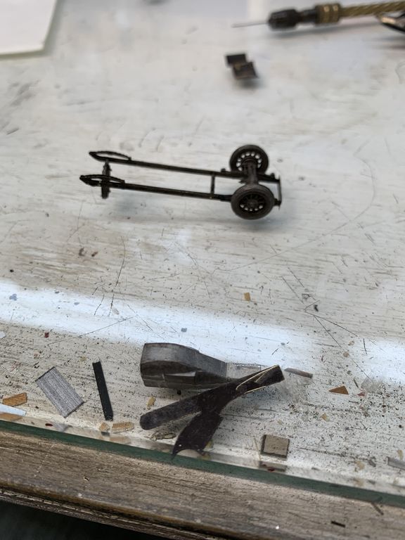 This my starting attempt at the fenders. The running boards need to be tweaked. This is all very hard to work with because it's very thin brass sheet and it bends when you touch it very easily.