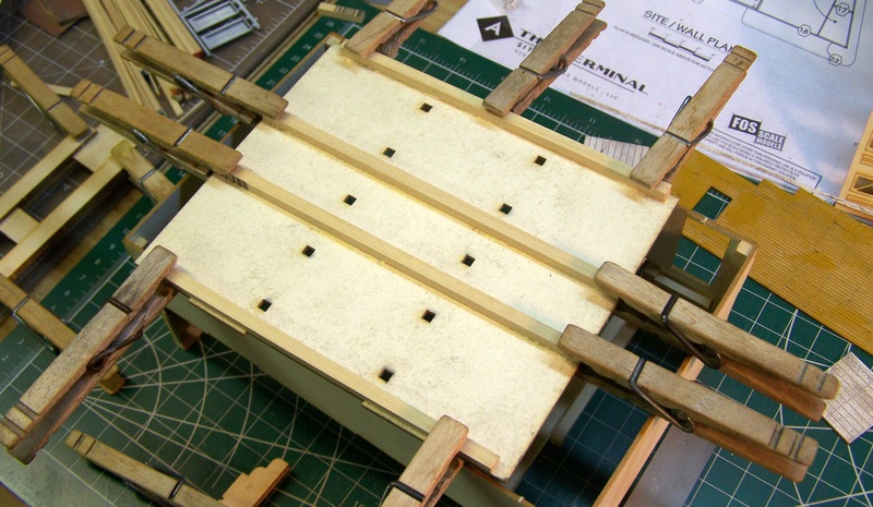 Below are some quick pics. This was all just careful, take-your-time and refer a thousand times to the drawings and photographs process. In the last photo, I am just holding the various facades against the task-board frame. Nothing is yet glued in place. I wanted to get a feel for how it was shaping up.