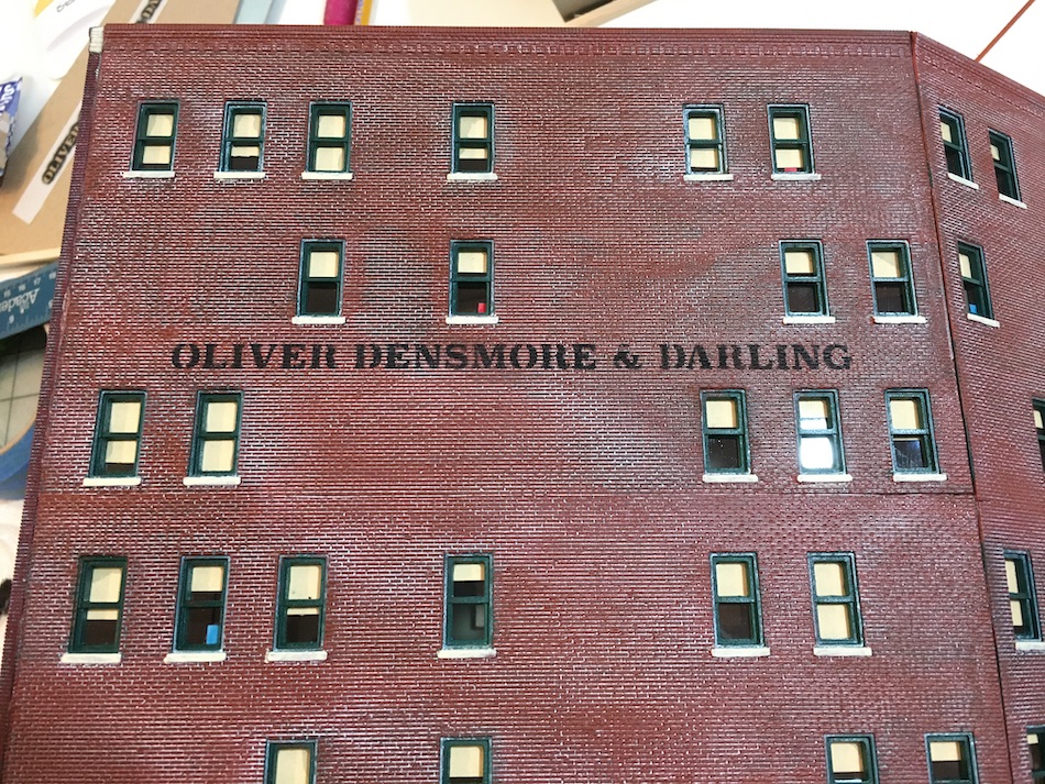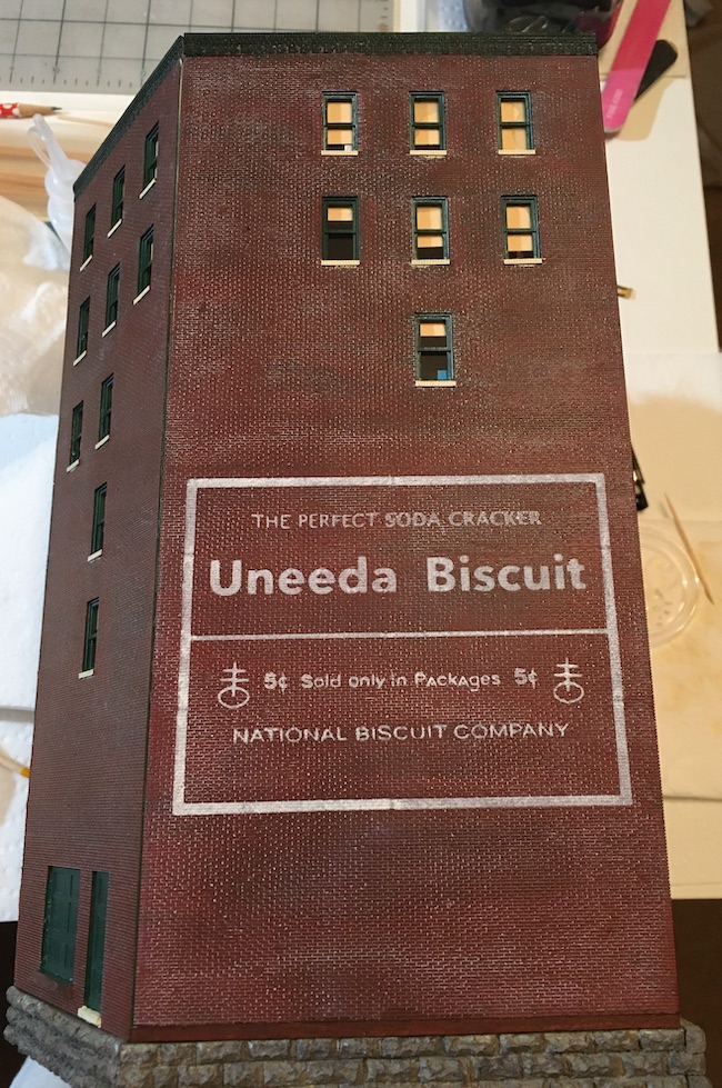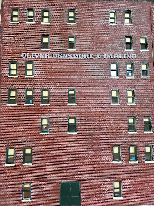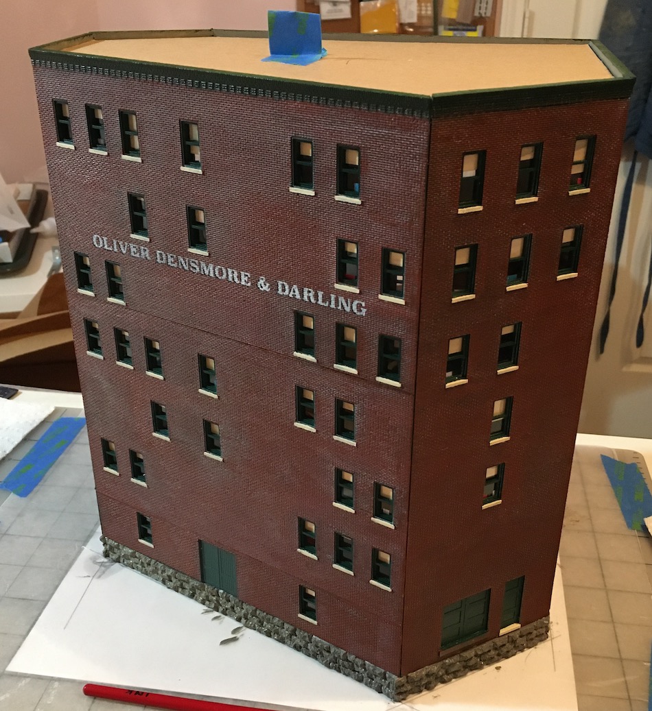 Here is the assembled building with foundation.  This is the side that faces away from the tracks.