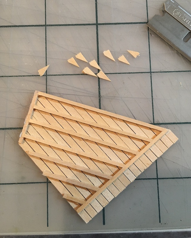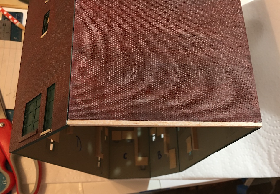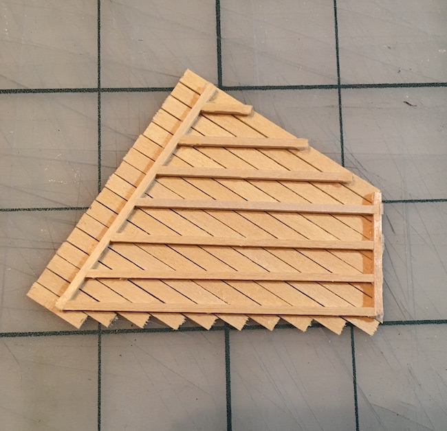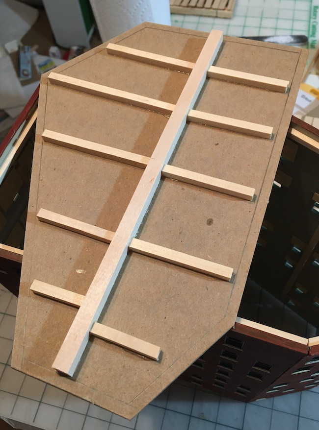 The roof is cut from chipboard and reinforced with fairly heavy stripwood.