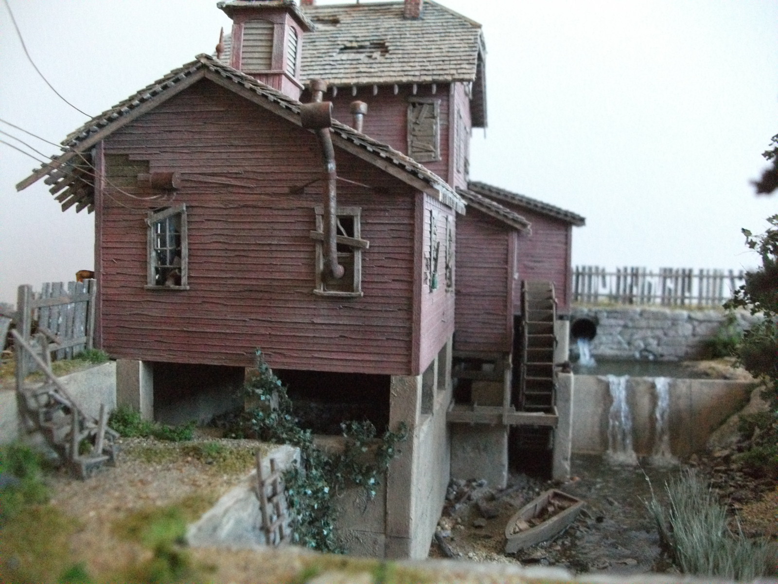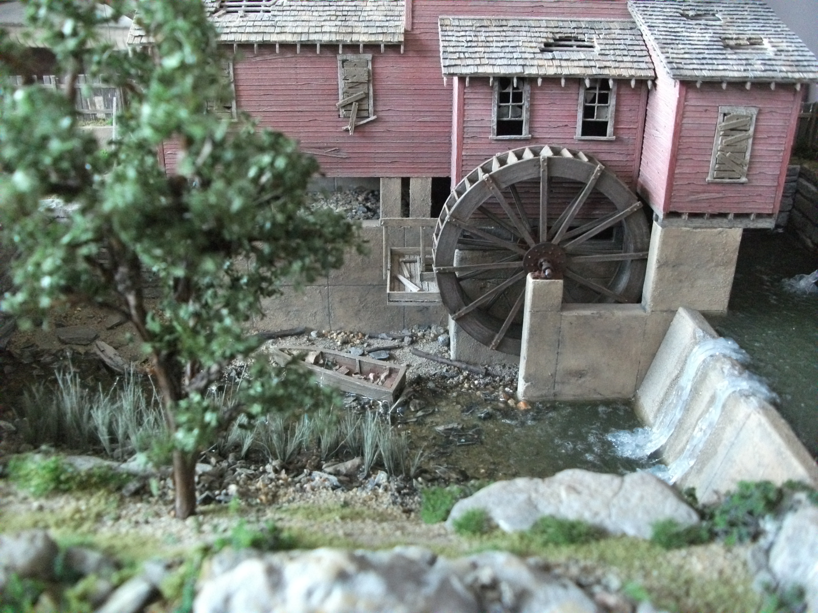 Exquisite modeling, Eric. Dilapidated is hard to do well...you nailed it.👍🏻👍🏻👍🏻 Perhaps you could comment on the water flowing from the pipes behind the wheel?