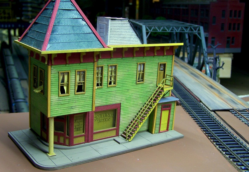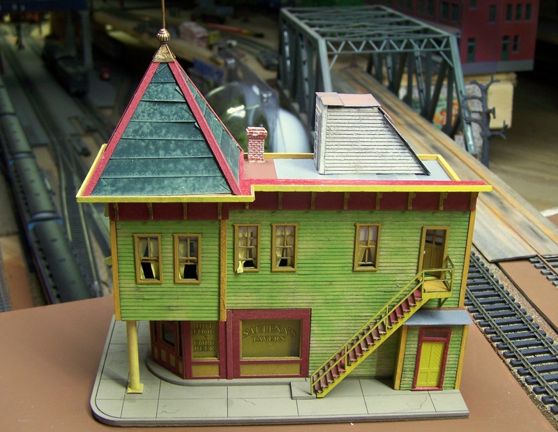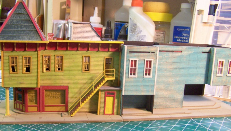 The basic Saulenas structure itself is done, sans weathering, roof tar, signs, minor details, etc.  I want to get the next structure in place before those steps so that I can work with it all as a unit.  Here are some pics: