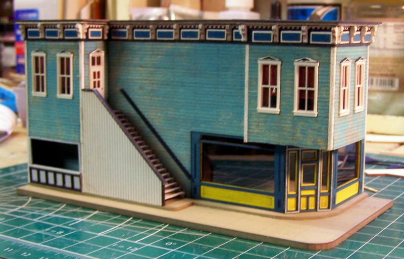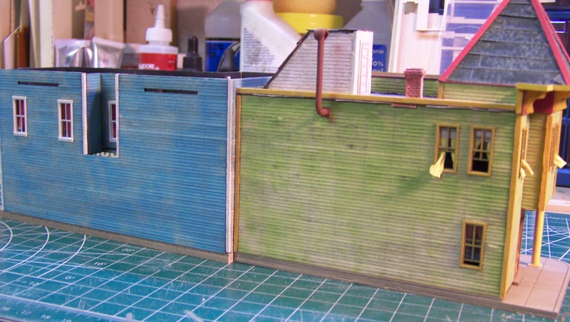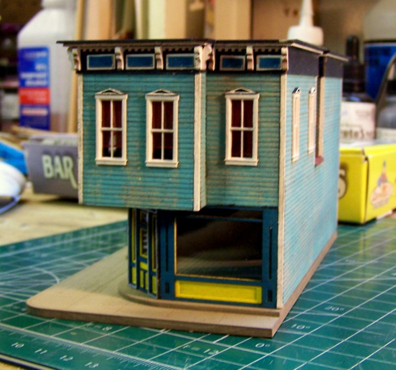 Note: the end wall you see above adjoins Saulenas Tavern, so has no detail.  In fact I need to trim the cornice so it will sit flush to its sister building.