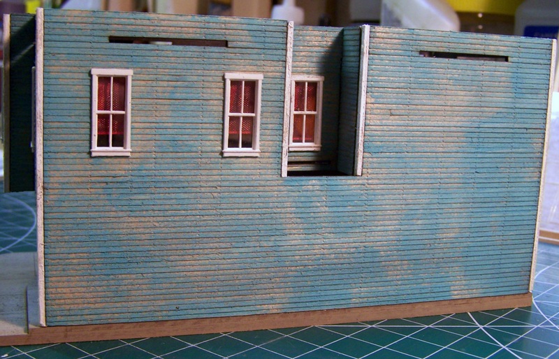I want to point out how easy it is to get a wall upside down. The small inset wall with the window, on the alley side, can be deceptive if you are not paying attention to the direction of the clapboard.  I installed the window and window dressing, and actually installed the wall upside down, mostly because I was mistakenly putting the tab slot at the top, to match the other walls.  This is incorrect, and the tab slot goes at the bottom. Fortunately I caught it before the glue set.