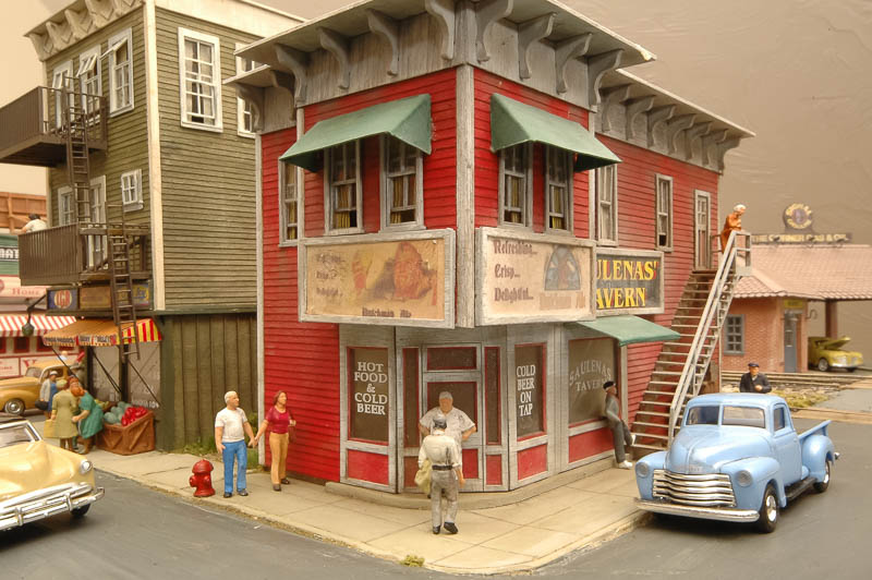 The figures, and the leftmost part of the clothes line, are from Preiser. I've seen a Woodland Scenics version that is pretty nice. The right section of of the clothes line is scratched with a tall piece of lumber for the fence corner and a piece of thread.