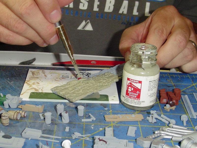 This wall is a metal casting and I had previously primed it with Floquil Primer.  The first thing I did was, per the instructions, paint it with Floquil Concrete.