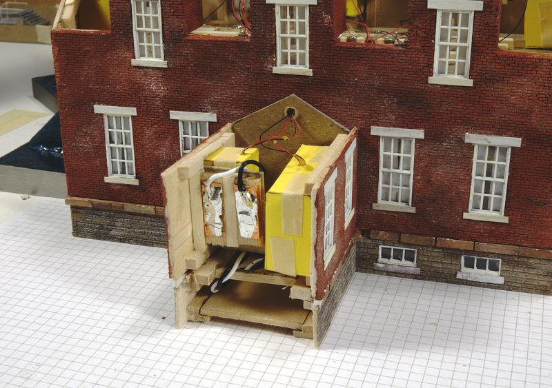 The "connector walkway" must be attached now because it has two lights that must be soldered to the resistor bridge inside the house. I also provided a solder point to connect the light tower, which won't be attached until the very end.