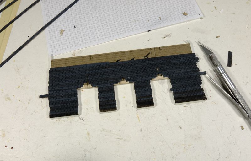 Very frustrating and delicate work, but dormers boarding were finally glued in place...