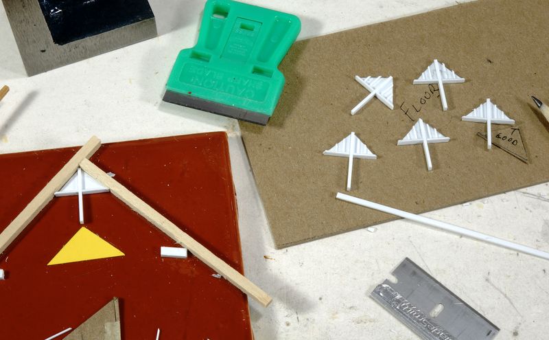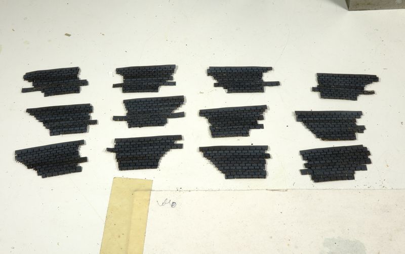 The dormer boarding are a smaller & simpler version of the gable ends. Using the same jig to build them, again with styrene, and built 6 smaller versions.