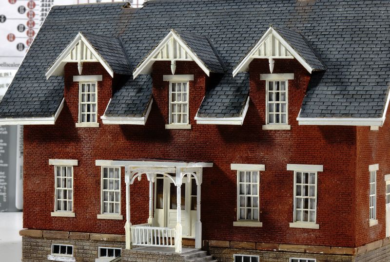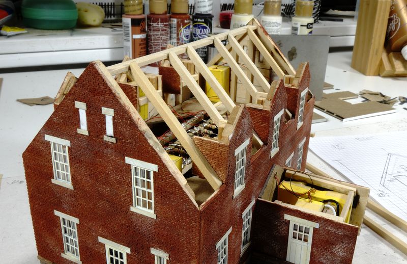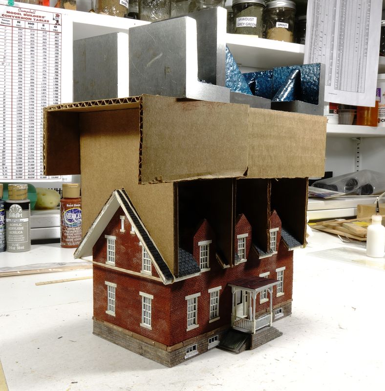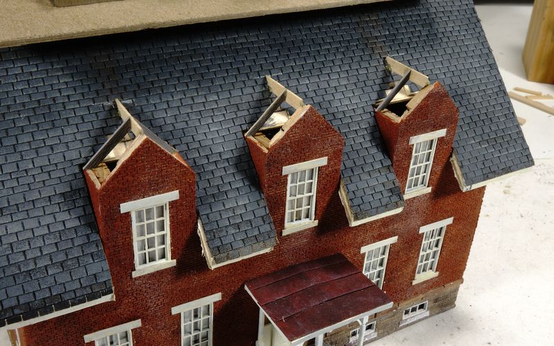 Each dormer has two simpler brackets, for a total of 12. All styrene, ready for putty & paint.