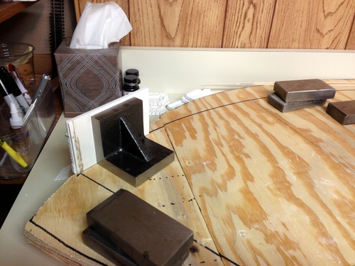 The next step in the project was actually assembling the interior frame of the roundhouse. As with the rest of this project, lots of clamps, weights, and measuring twice. This series of pictures tells the story of this process.