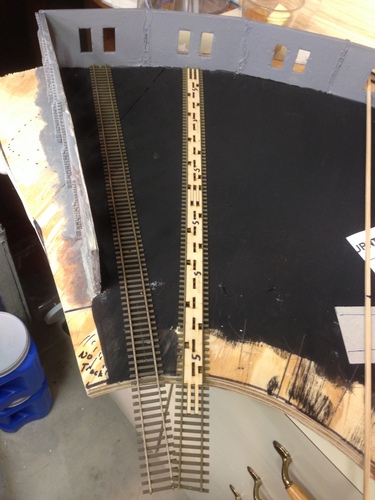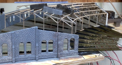 The next step was to paint the floor under the tracks black - simulates repair pits under the track. Then the track was laid and wired.
