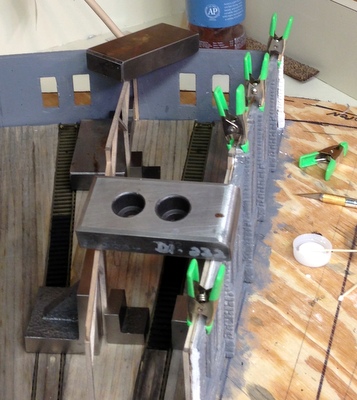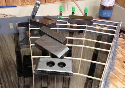 Then it was back to the workbench and lots of gluing and measuring and more gluing.  You can't have enough weights and squares for a project this size.