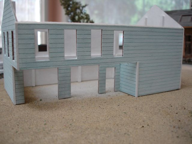 Your build is coming along very nicely. I like the faded blue on the exterior walls.