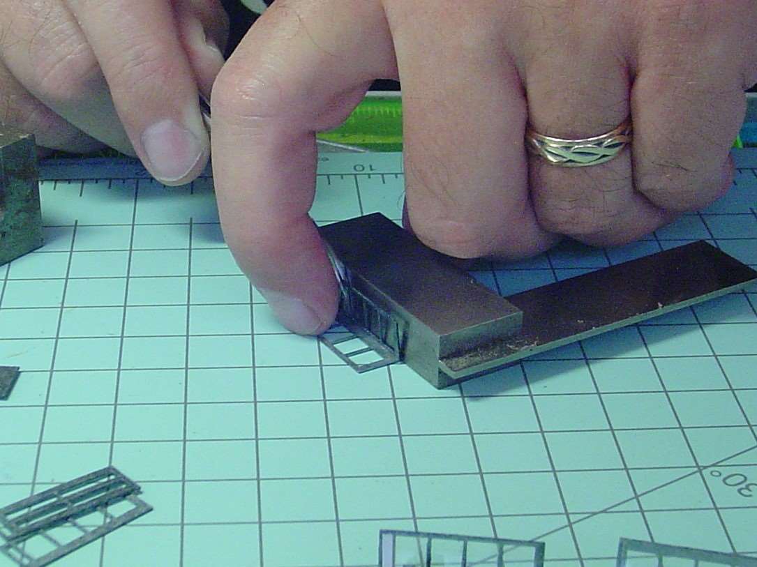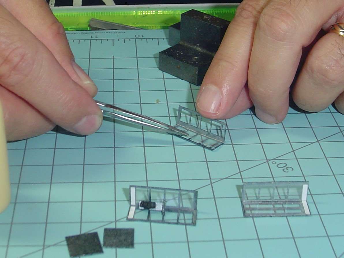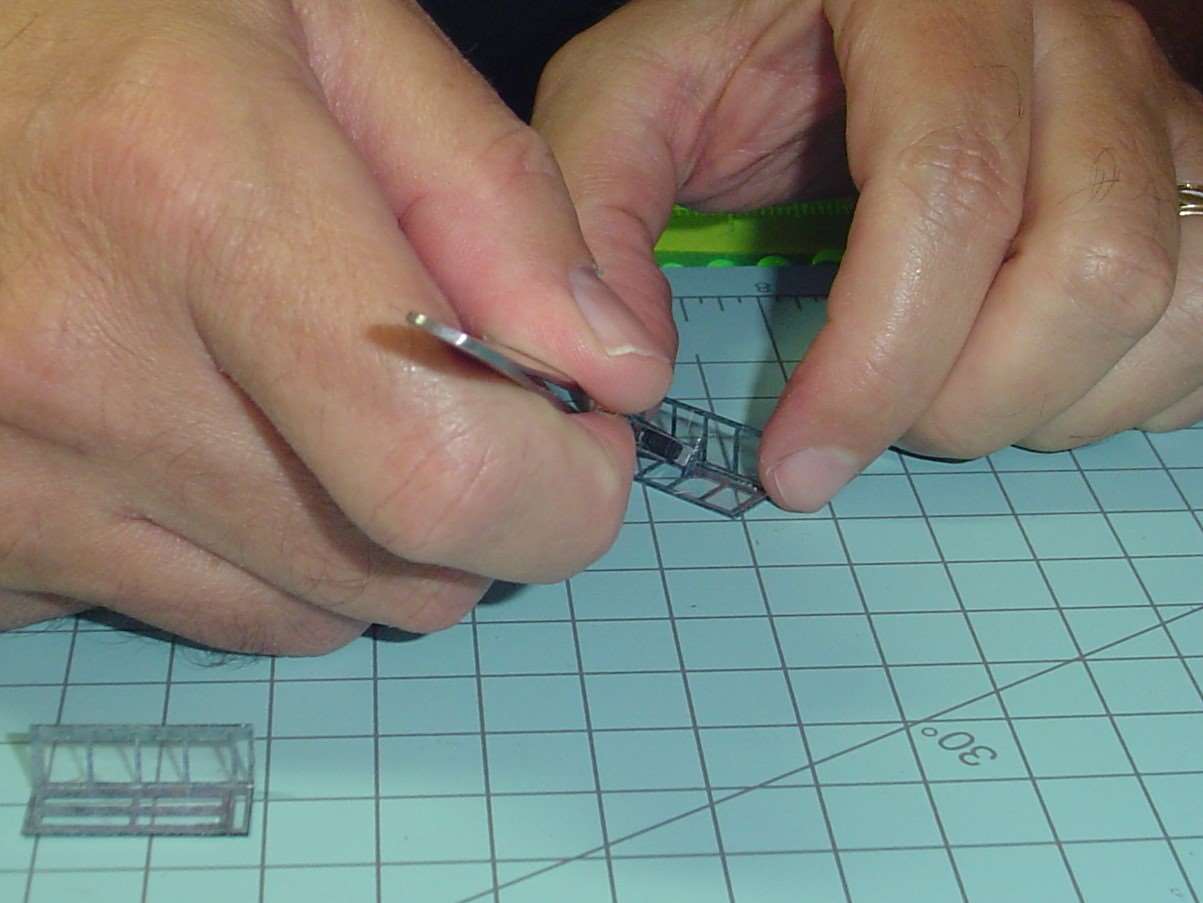 You make two halves of the phone booth that way and when glue had set you can then glue the glass in place.  I used a very sparing amount of MicroScale Industries Micro Kristal Klear for glue.  If I screw up and use too much or get a smudge on the glass (acetate) where I don't it I remove the glass (acetate) and scrub it with q tip dipped in isopropyl rubbing alcohol to clean it off and start over again.