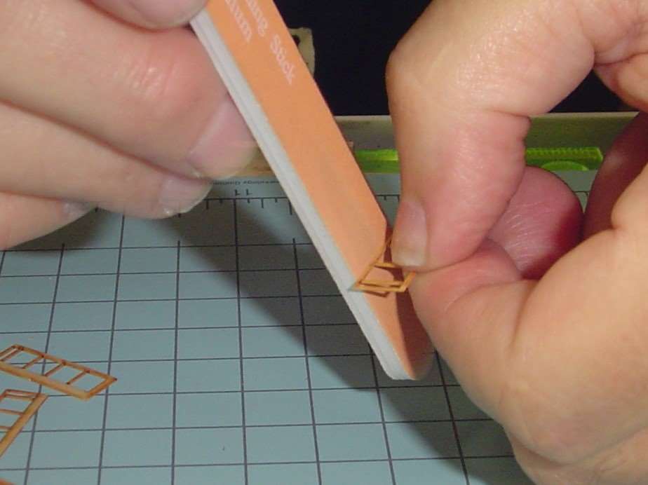 I used a medium sanding stick (I purchased a set of these at Hobby Lobby) to smooth the edges where the cuts were made.