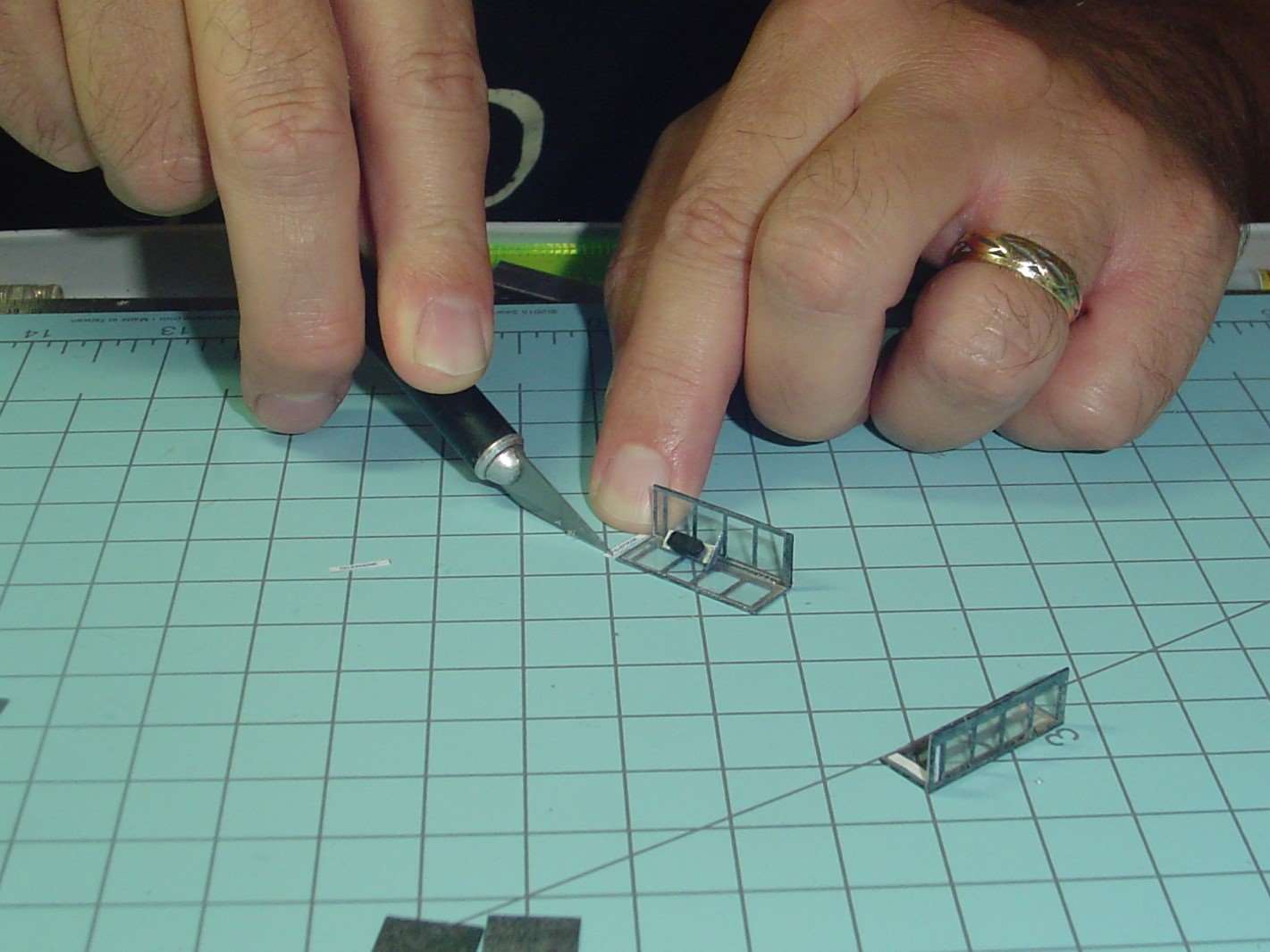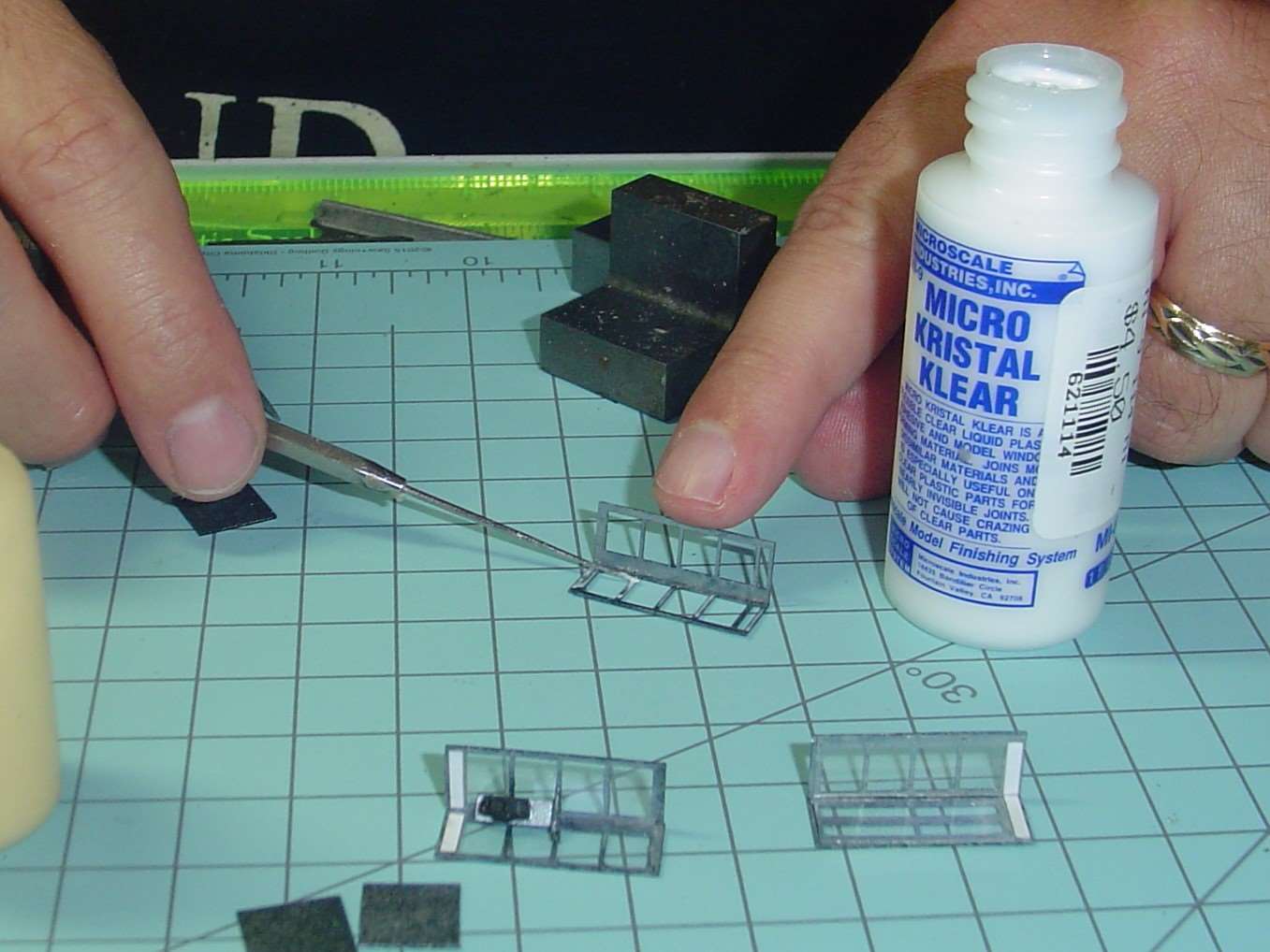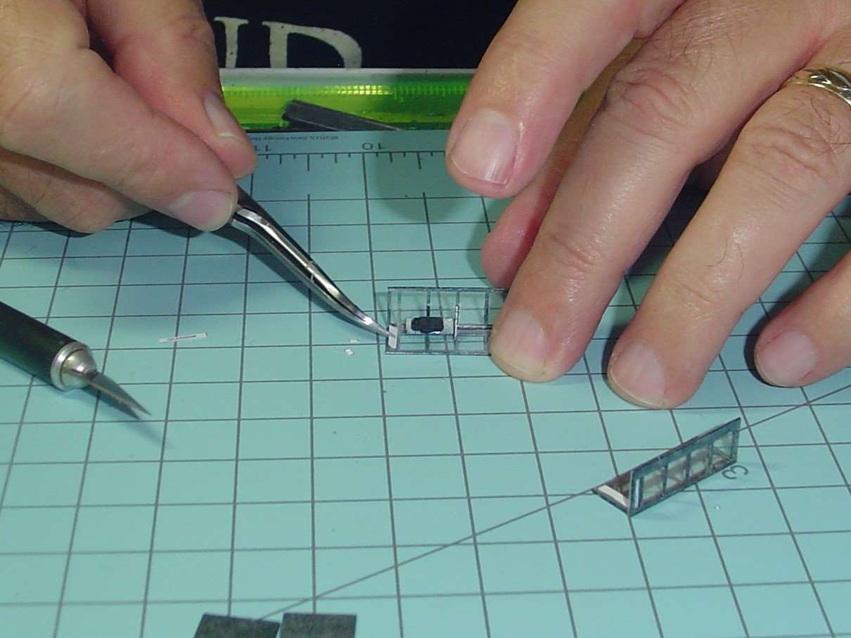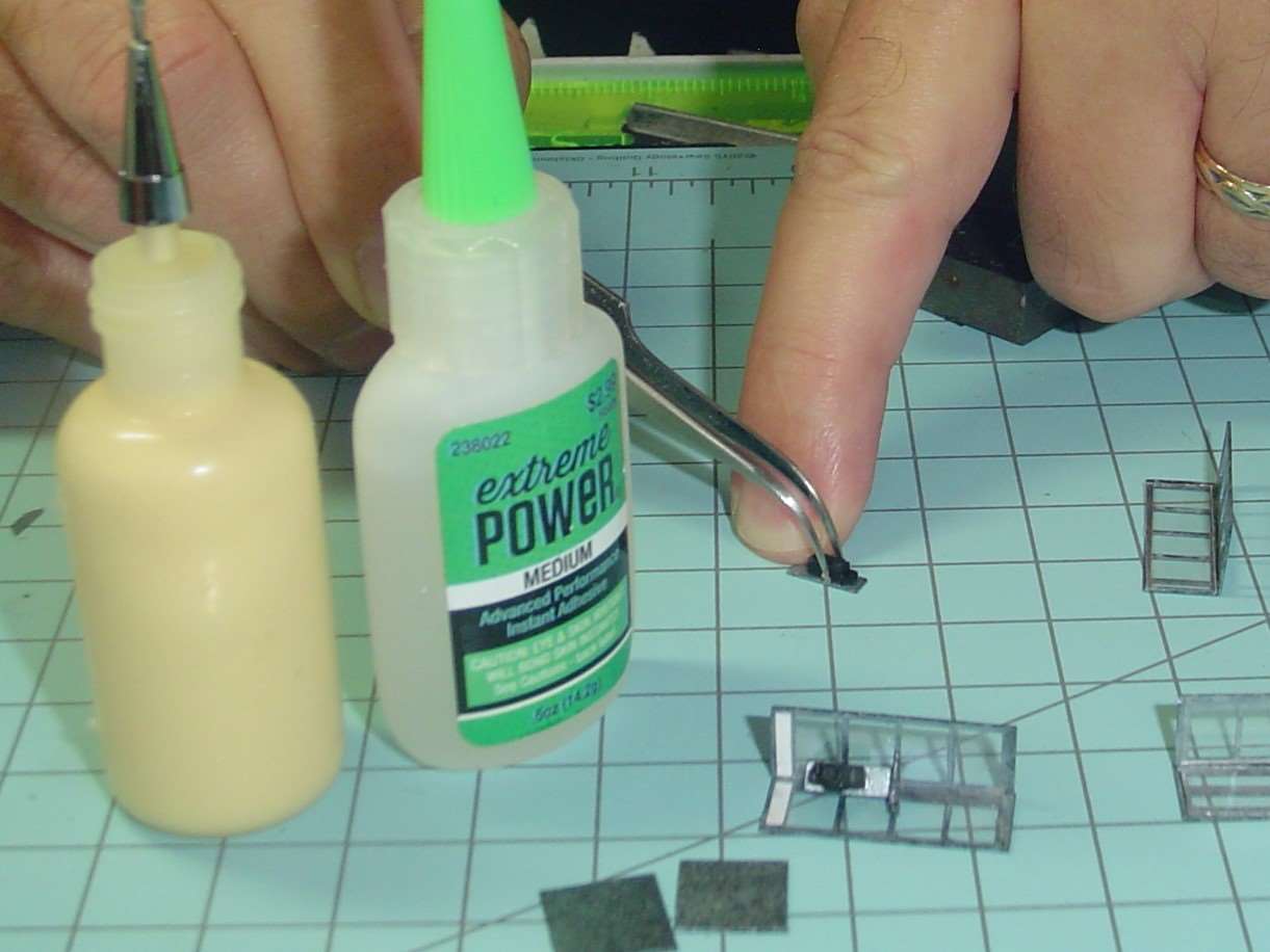 Then the shelf gets carefully glued into place.  This step was a little nerve wracking and required the Optivisor.  I used the Kristal Klear for this.