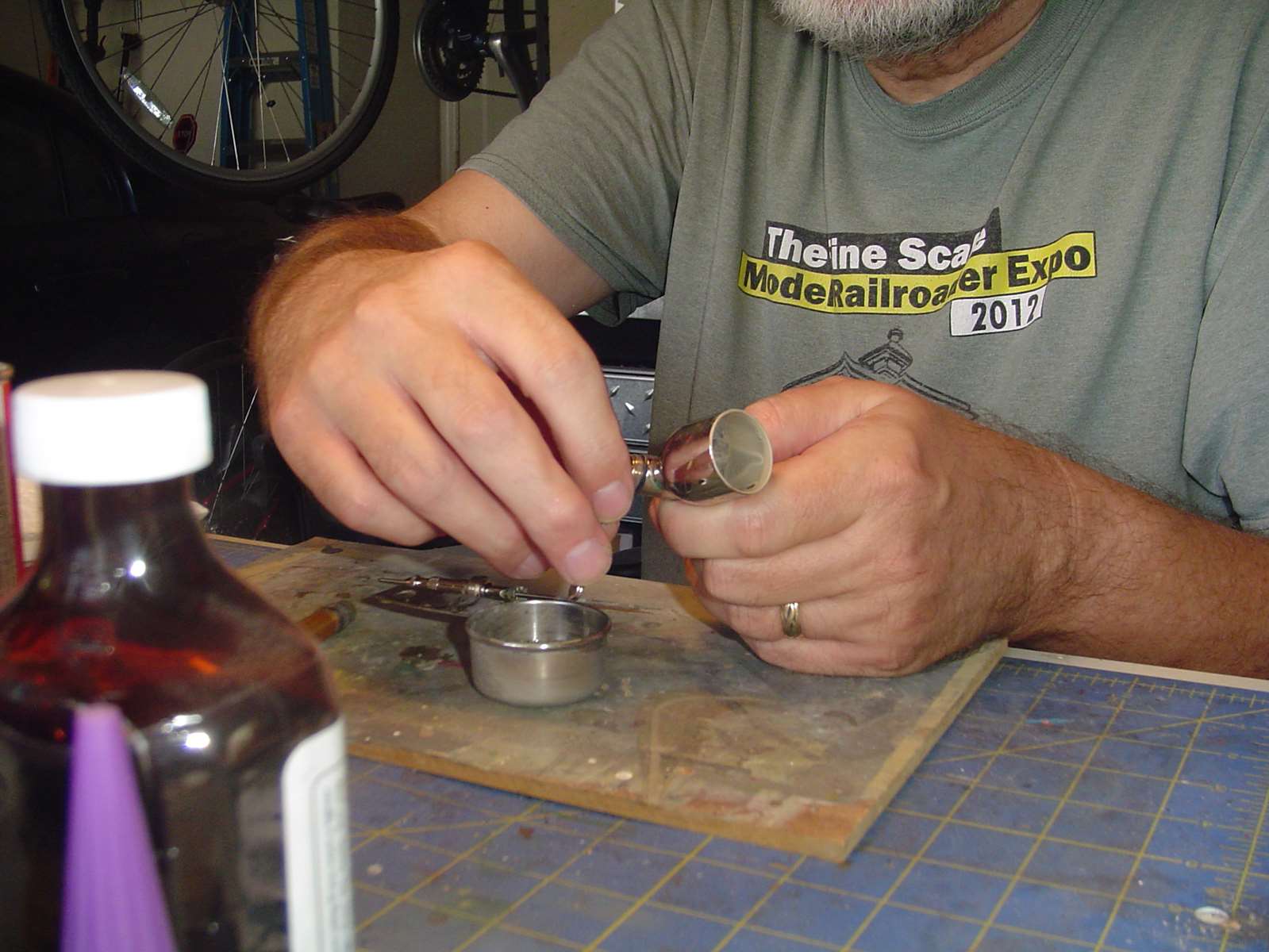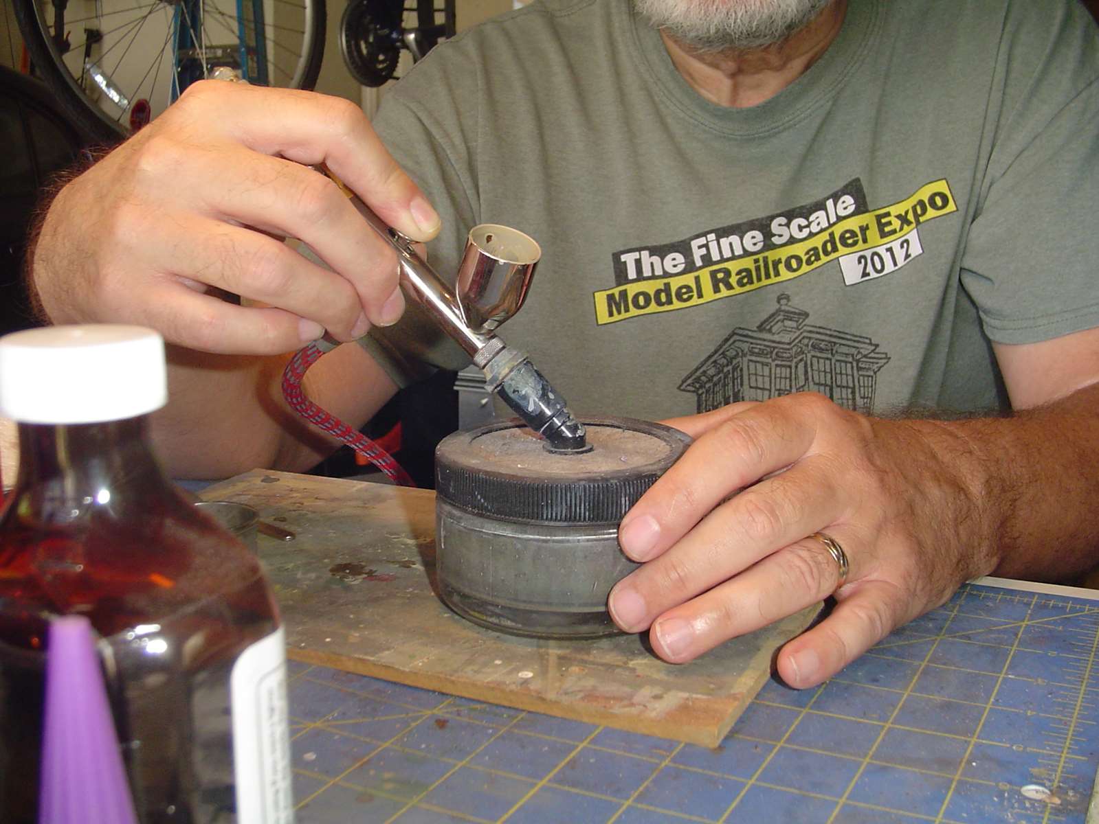 I mixed up a bottle of Floquil Earth first.  If the paint is in relatively good shape (appears fresh, thin, with no lumps, etc.) I don't worry about straining it through a piece of old nylon.  You can pretty much tell when you mix it up what kind of shape it's in.  If it's not in good shape don't even bother.  I used to use Floquil Primer to prime things but I'm out of that.  I was about to switch over to Model Masters but Testor's has pulled the rug out from under us on that one.   >:(