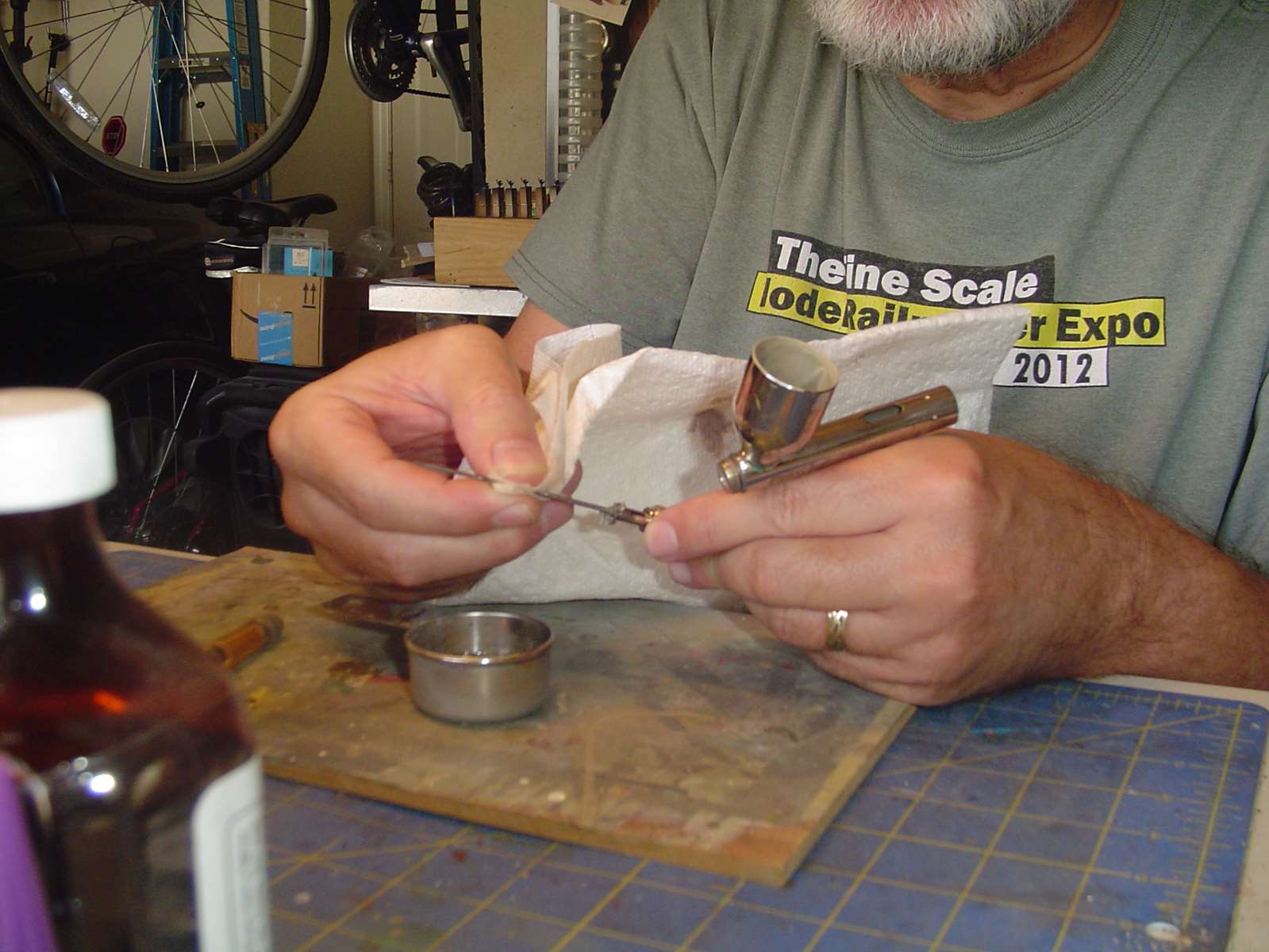From that I load up my airbrush.  As you can see it's a top feed.  Even though there's a cap that goes on it you still have to work with it upright.  Don't get wild with it or turn it sideways.  No need to do that anyway.  :P