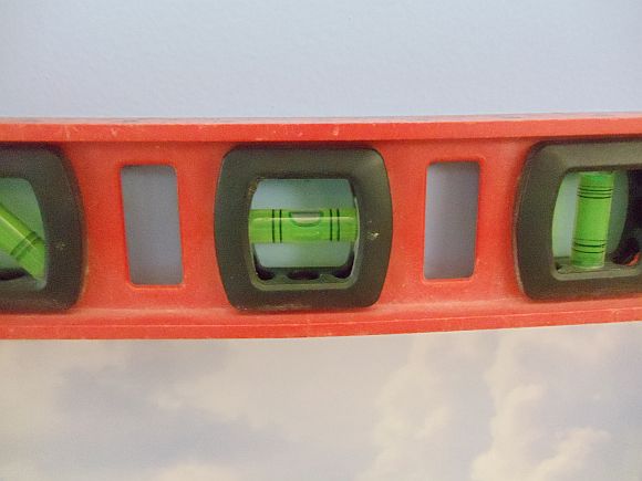 In the next photo you can see the photo backdrop is level. However, If I continued this line, the backdrop will be off two inches from the base line. In other words, the further I go to the left the higher the photo backdrop will go.