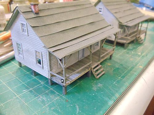 I finally finished the two cracker Houses. I still need to add a window fan or two and some rockers on the porch. All those little details are in one of the boxes under the layout but I haven't found the correct box as yet.