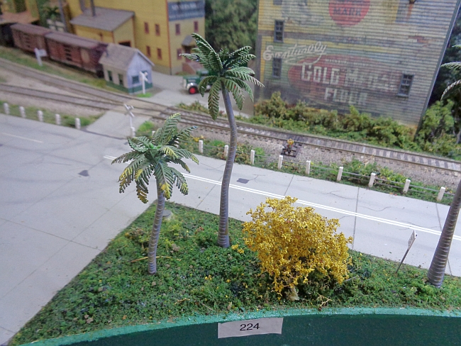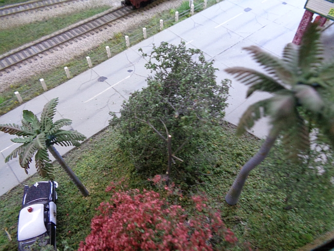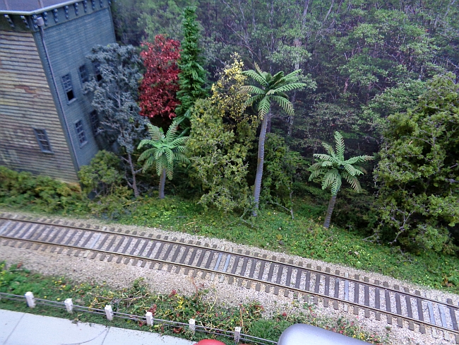 I mentioned earlier that I try to stay away from gray, olive or bluish tint scenery. Here is the one tree on the layout that I made with a bluish leaf tint. I cleaned it and it still looks dusty.