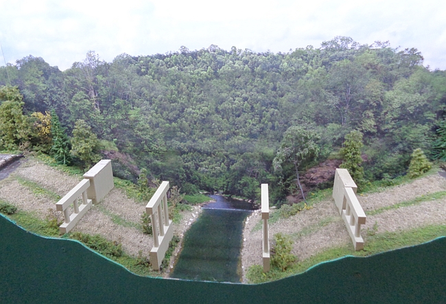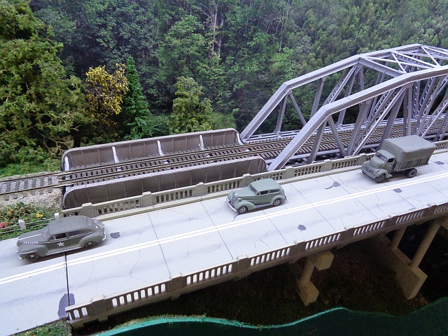 I weathered the concrete roadway but it doesn't show in the photo. This area was put back together. I need to get more  plexiglass to protect this area. No visitors will be here until the next open house on October 4th of this year.